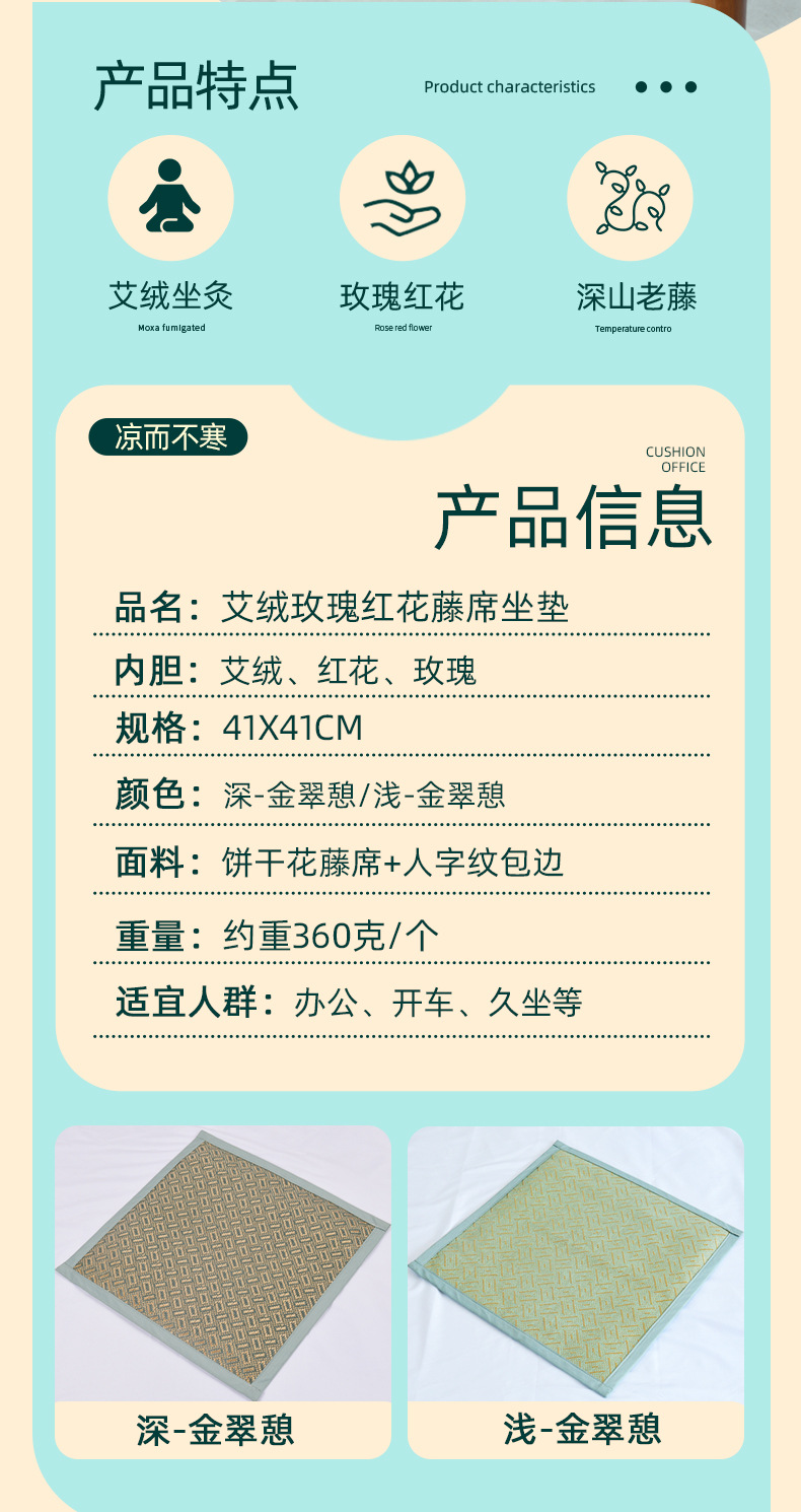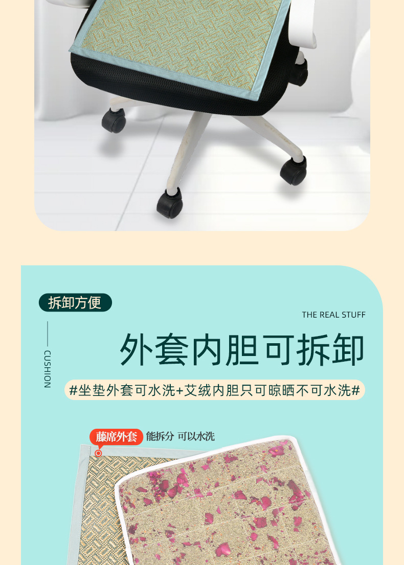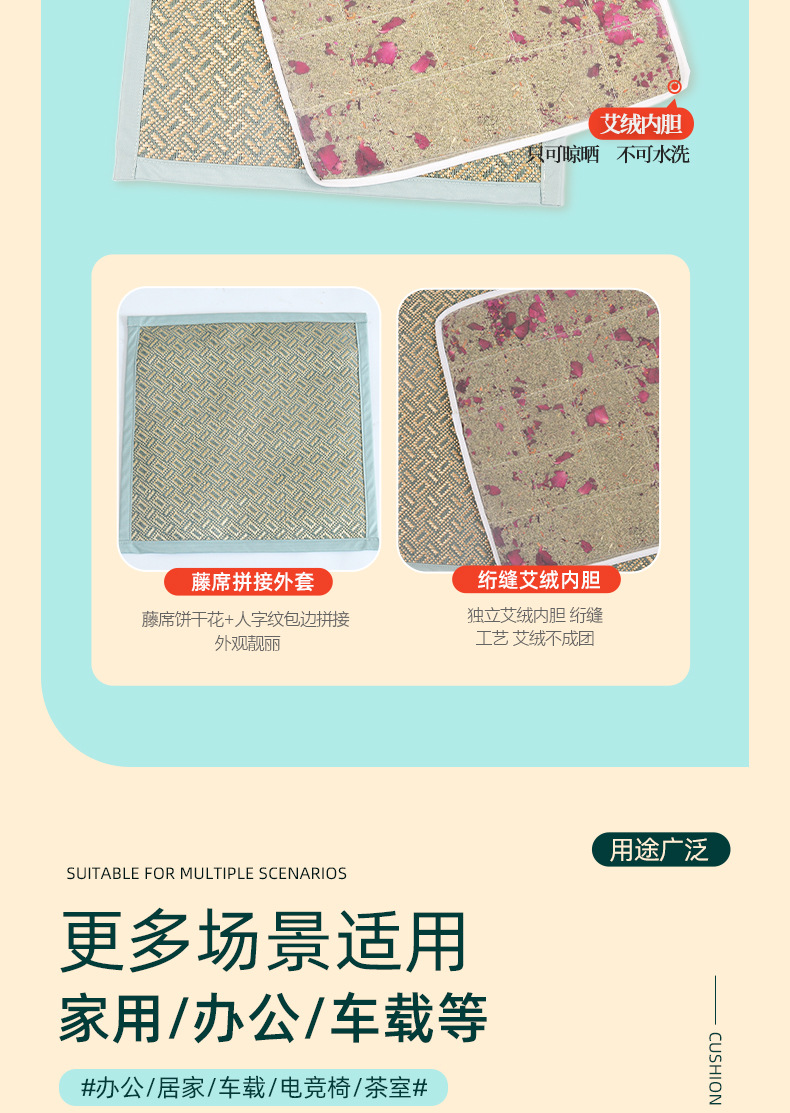 [小滋心选]【活动价 ¥39】【千年艾灸+藤席黑科技🔥】冰感降温不闷热,居家办公全场景适用!艾绒藤席坐垫 清爽凉滑不闷热 居家办公老少皆宜坐