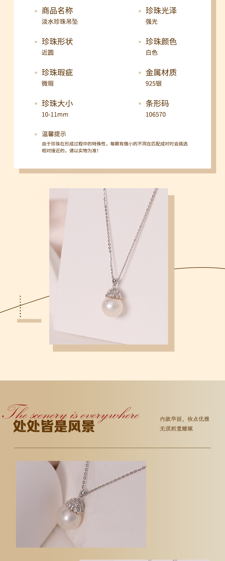 银925淡水珍珠吊坠10-11mm 106570(不含链)