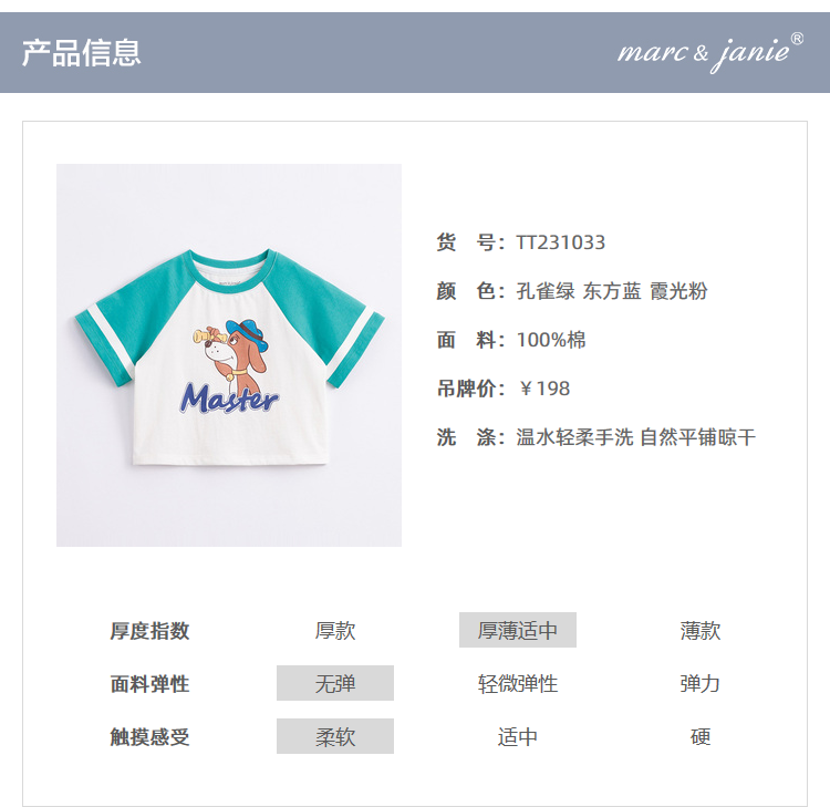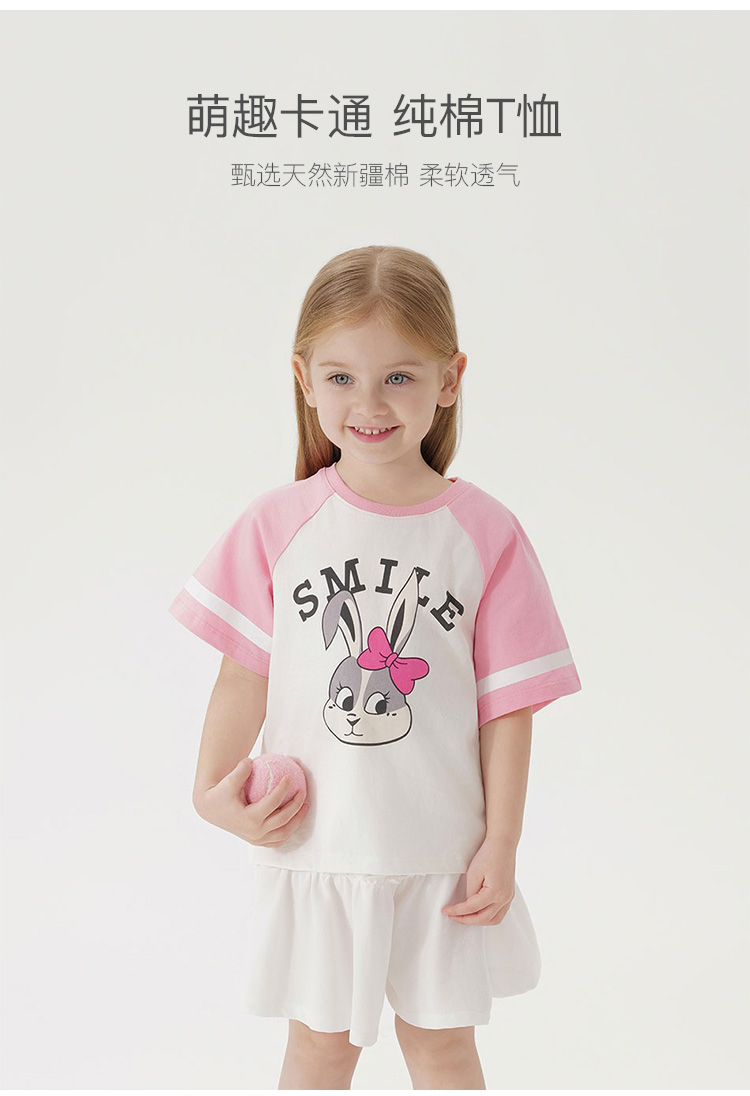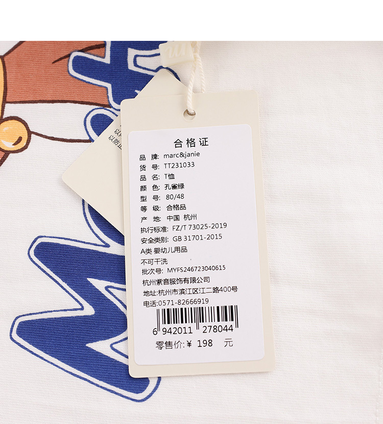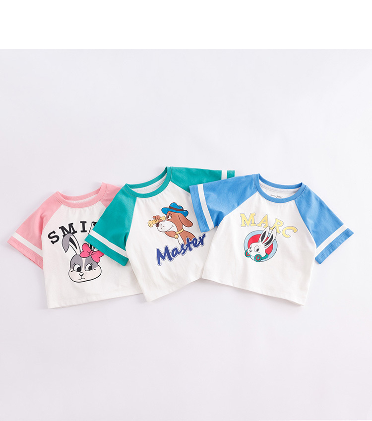 马克珍妮新款夏装 男女童卡通图案纯棉短袖T恤231033