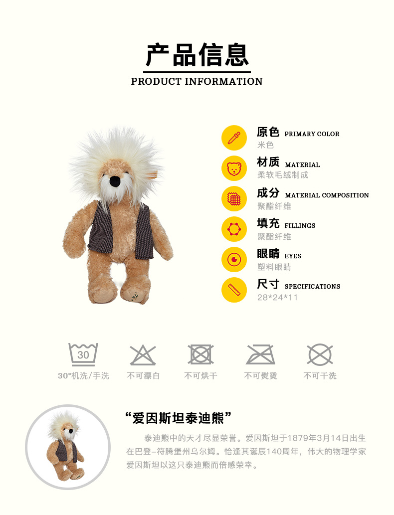 Steiff/史黛芙 爱因斯坦泰迪熊 28cm 022098