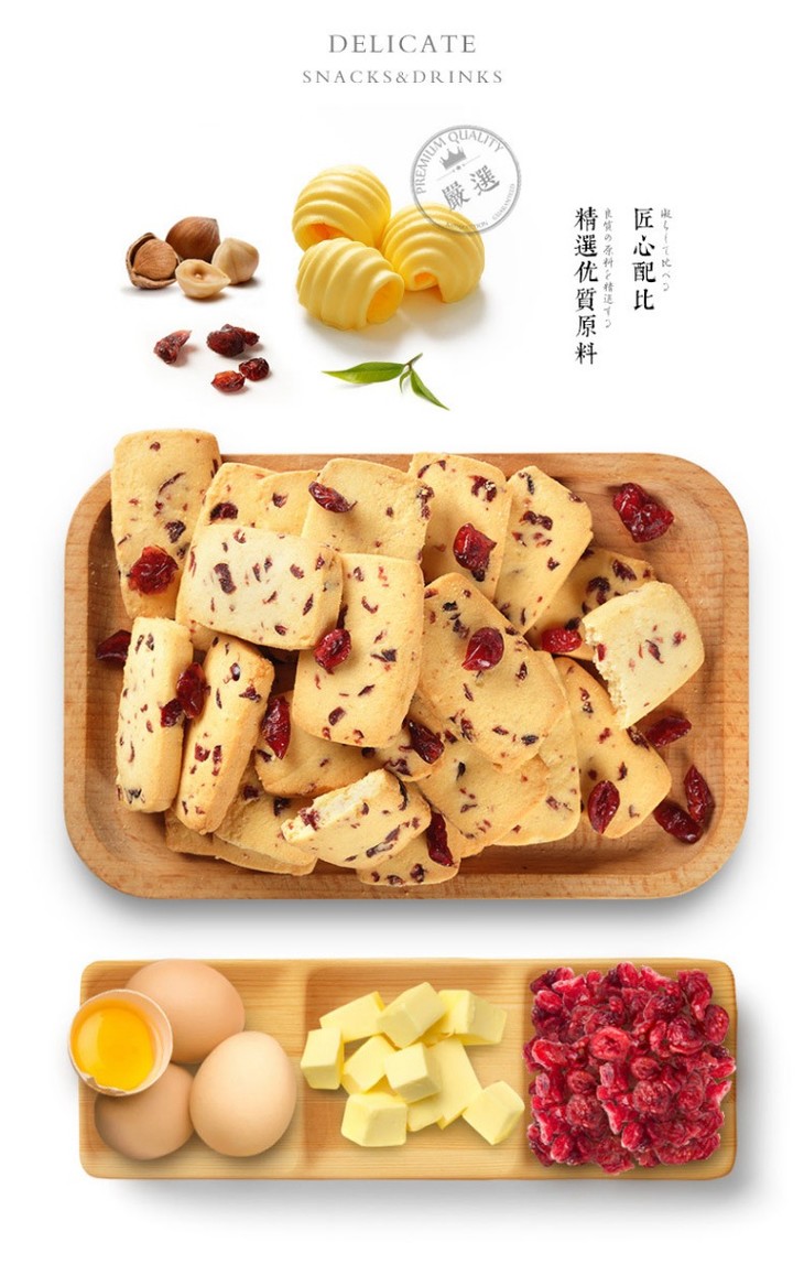 【卜珂零点】蔓越莓曲奇饼干】100g/袋*4 产地直发