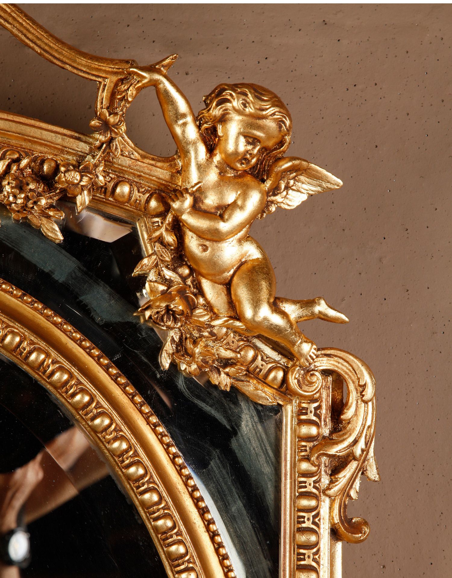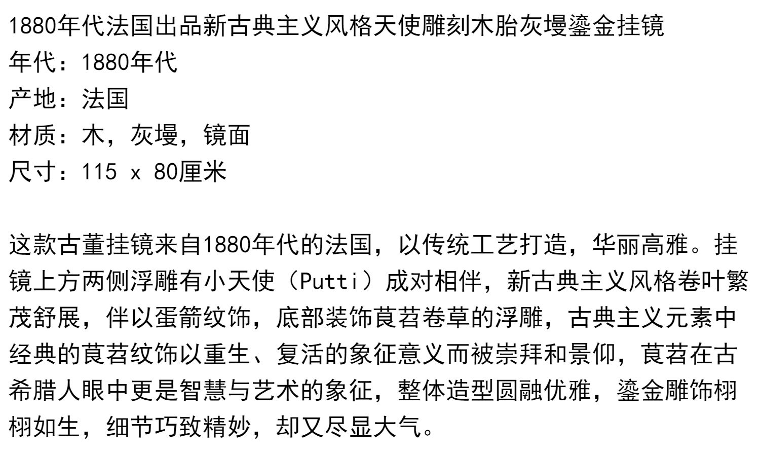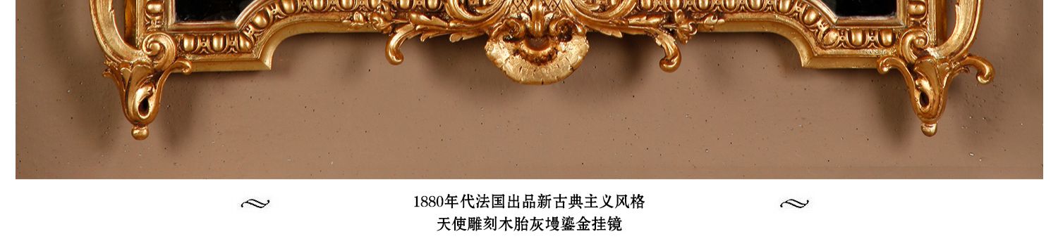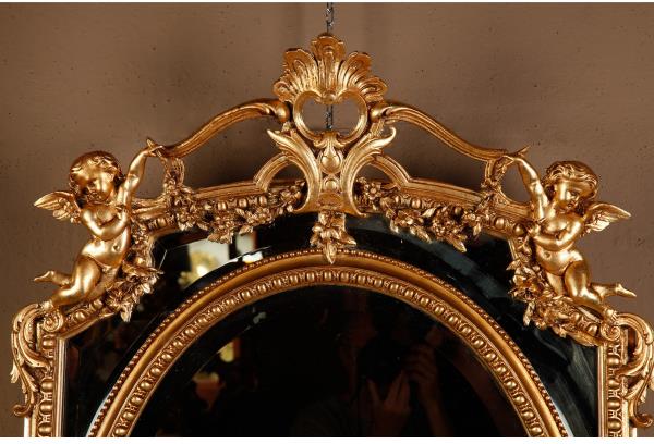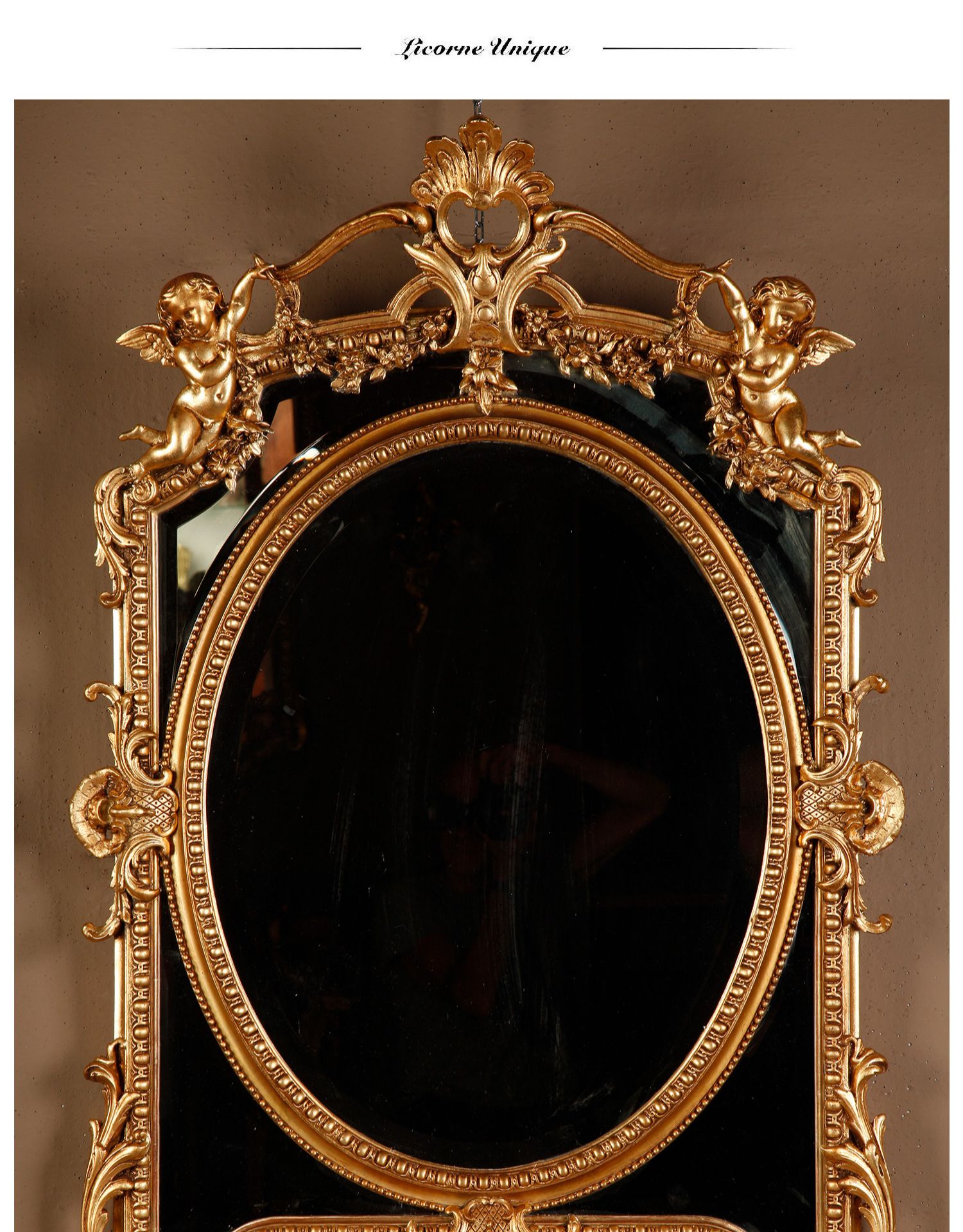 独角鹿西洋古董镜子法国新古典主义风格天使雕刻木胎灰墁鎏金挂镜