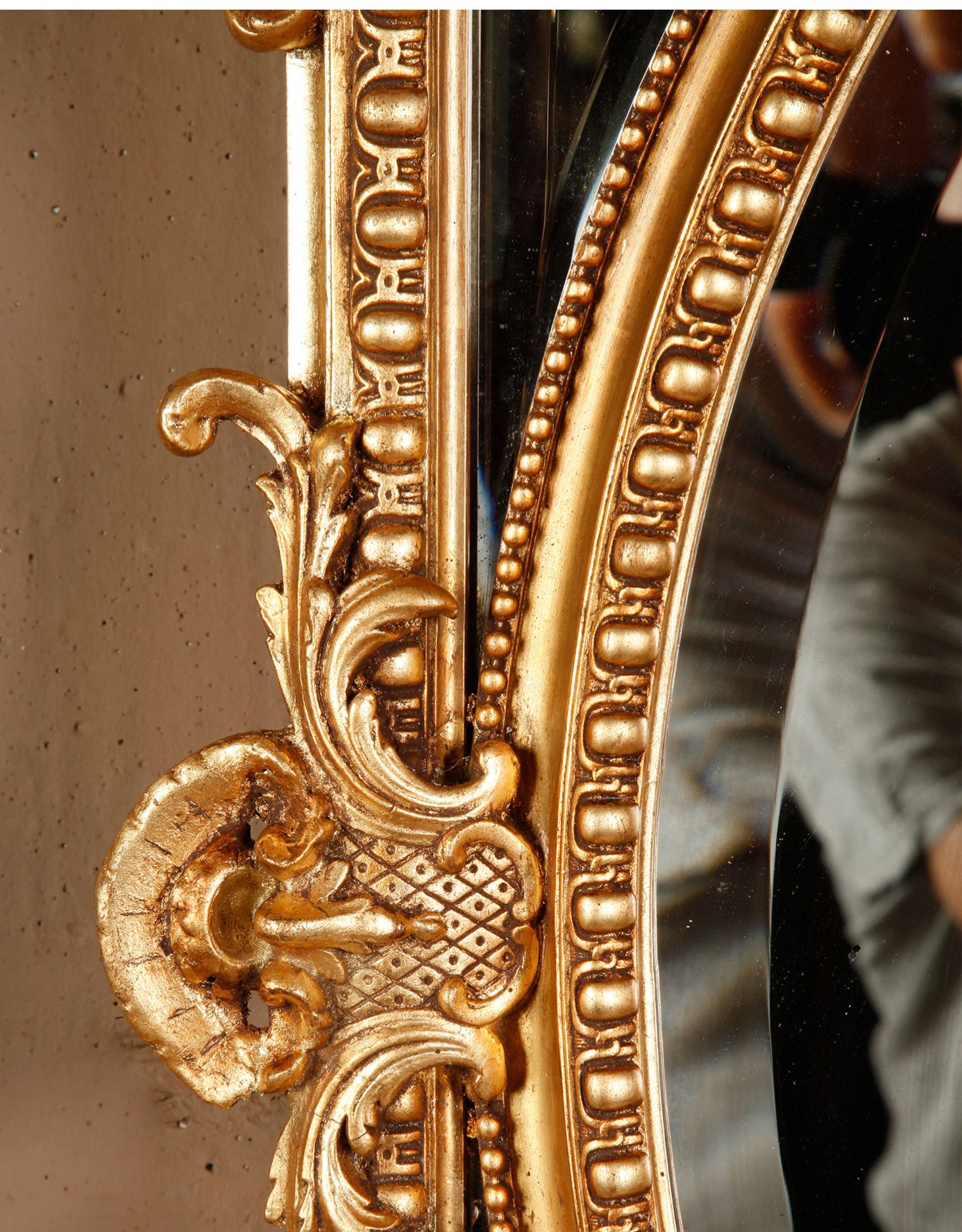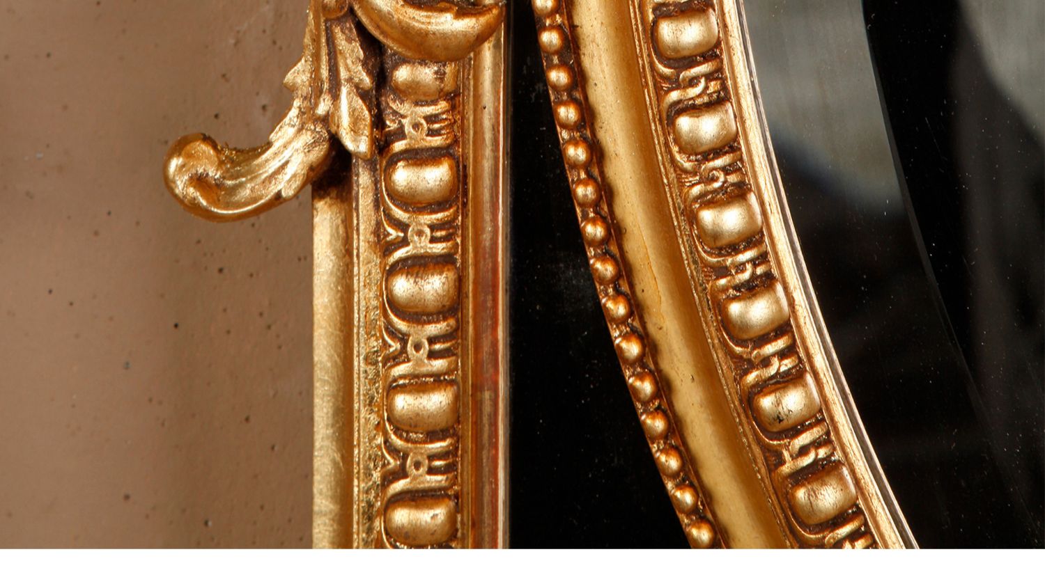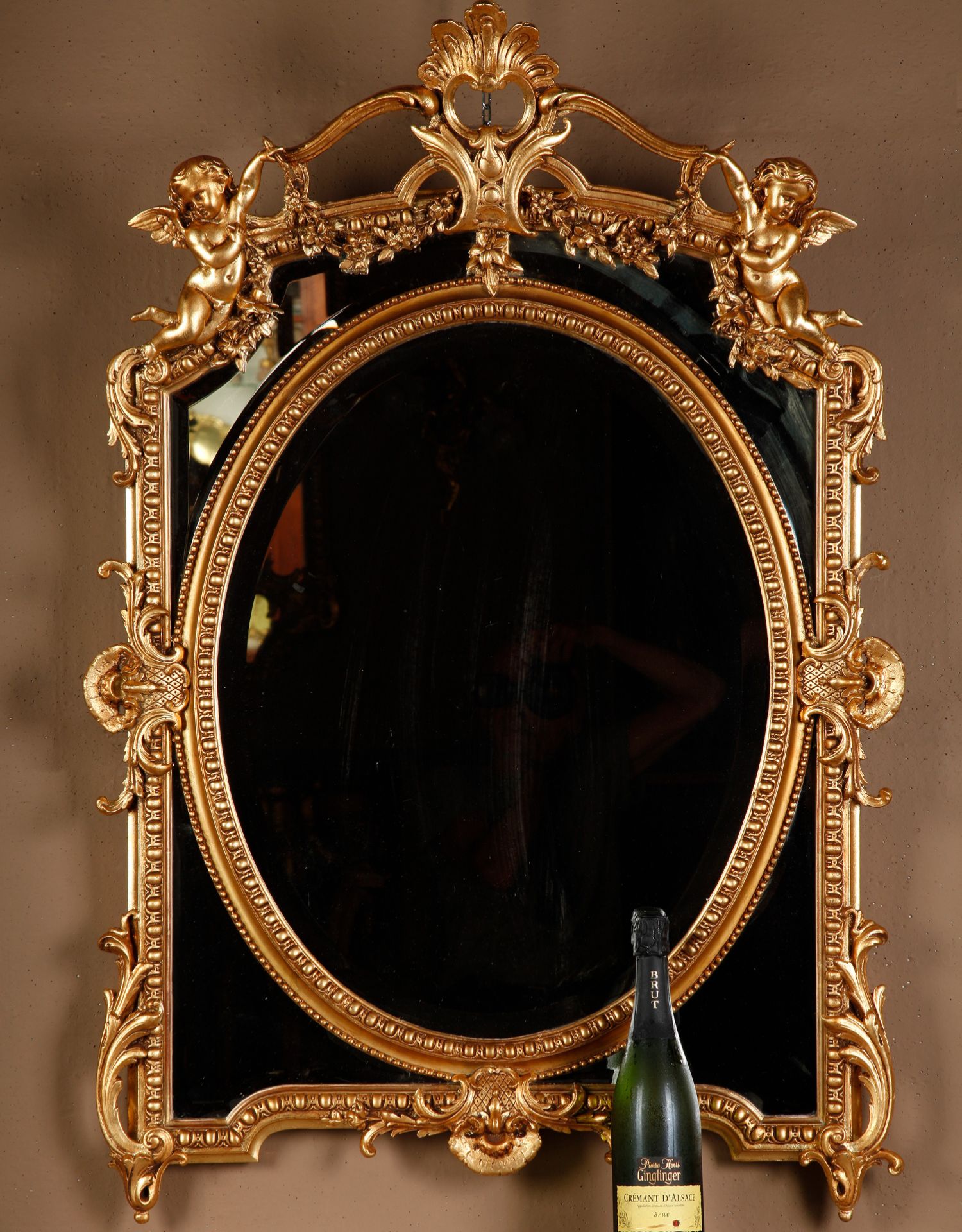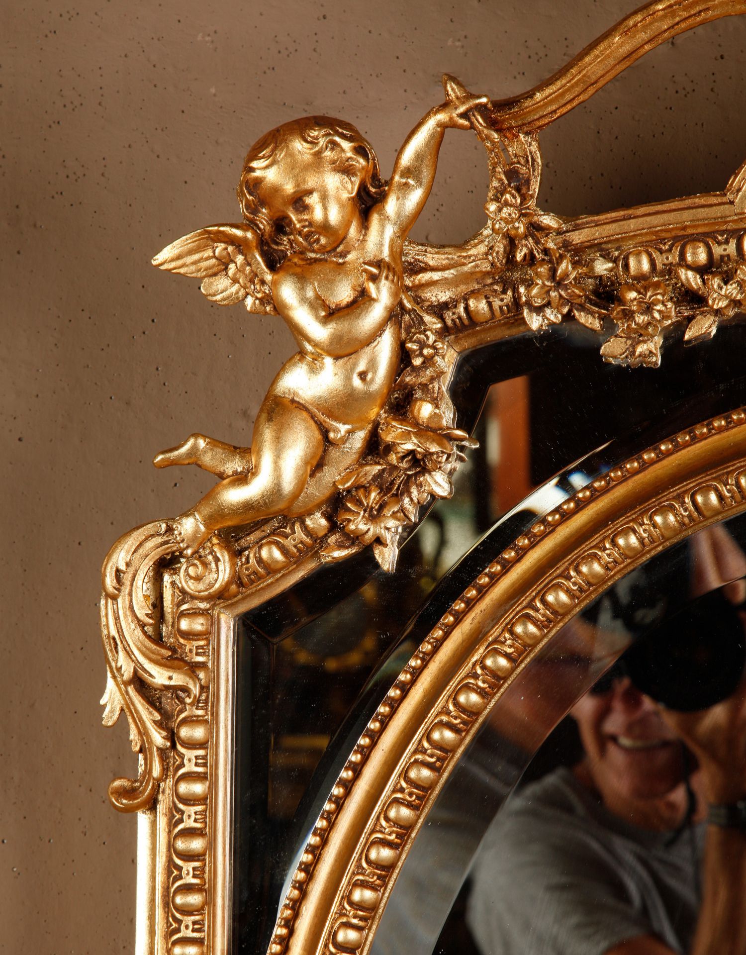 独角鹿西洋古董镜子法国新古典主义风格天使雕刻木胎灰墁鎏金挂镜