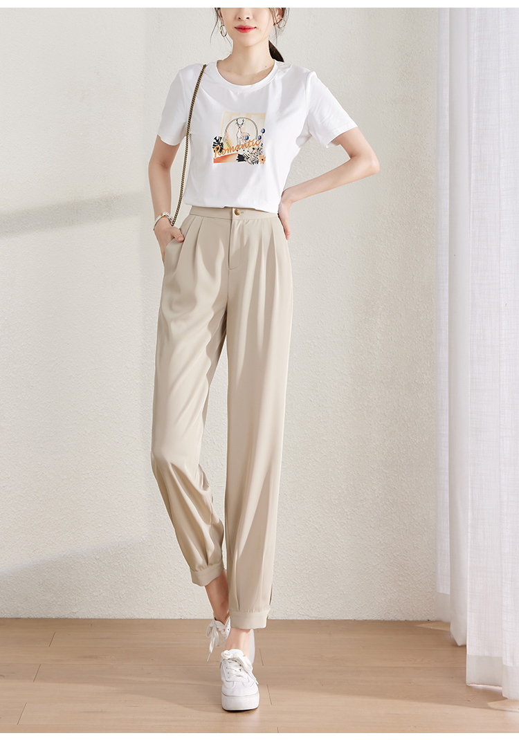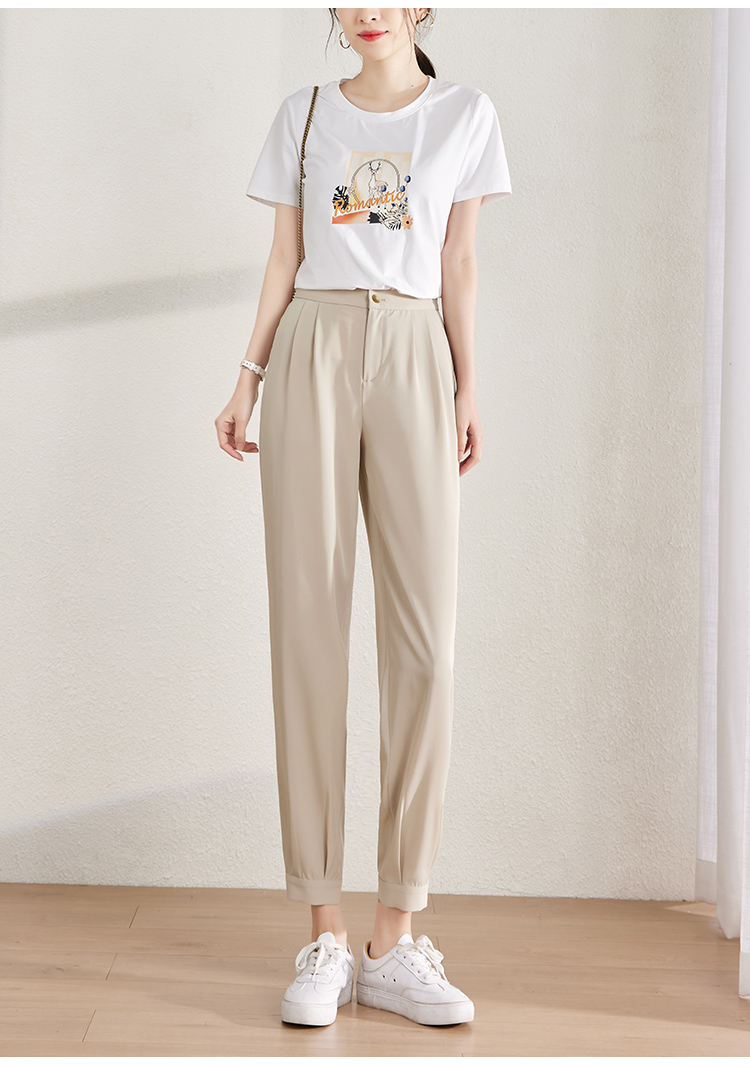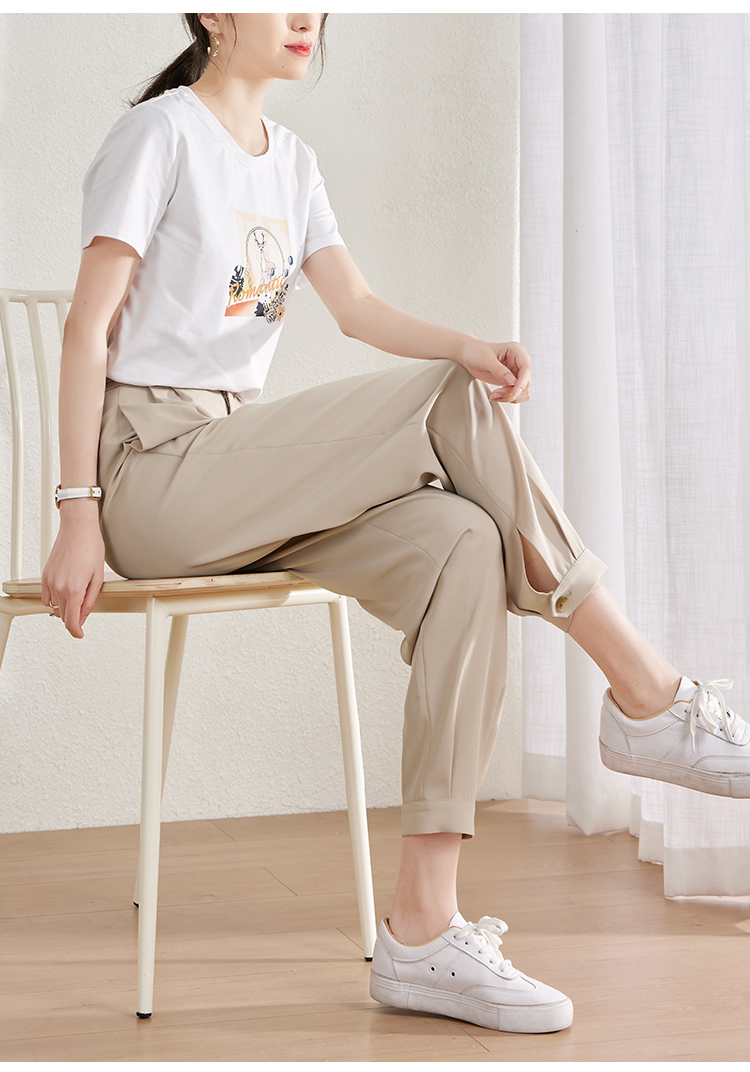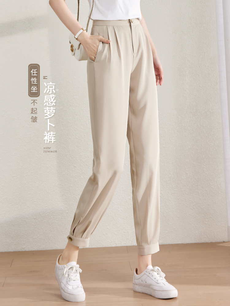 【专属特价】熙世界薄款萝卜休闲裤子女夏季新款简约利落小个子九分哈伦裤