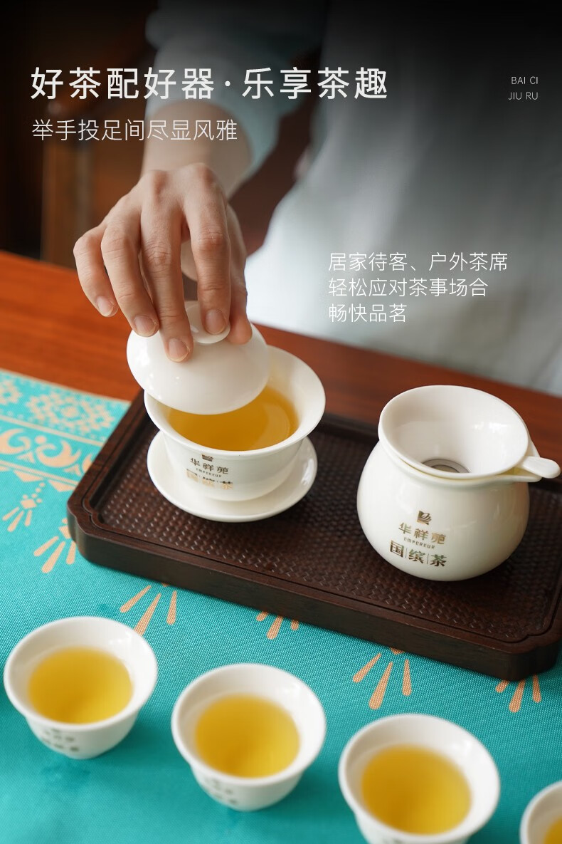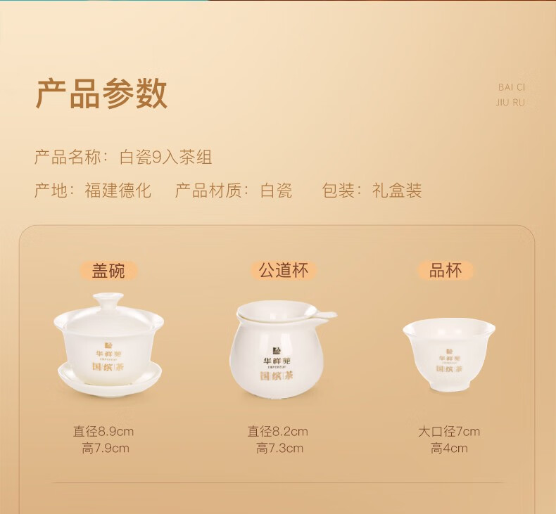 华祥苑 雅叙茶具 白瓷杯子 功夫茶具 9入茶组