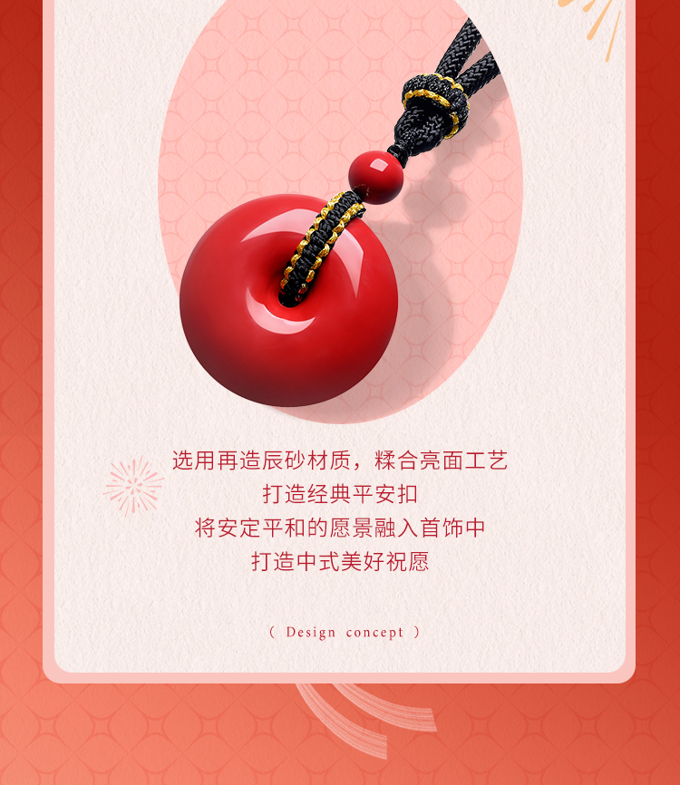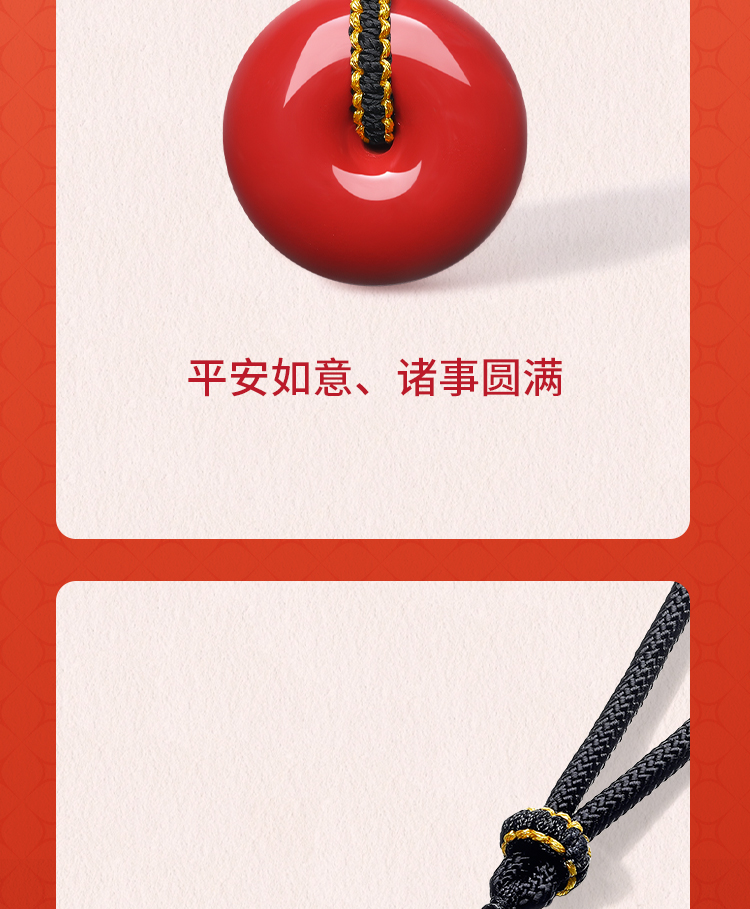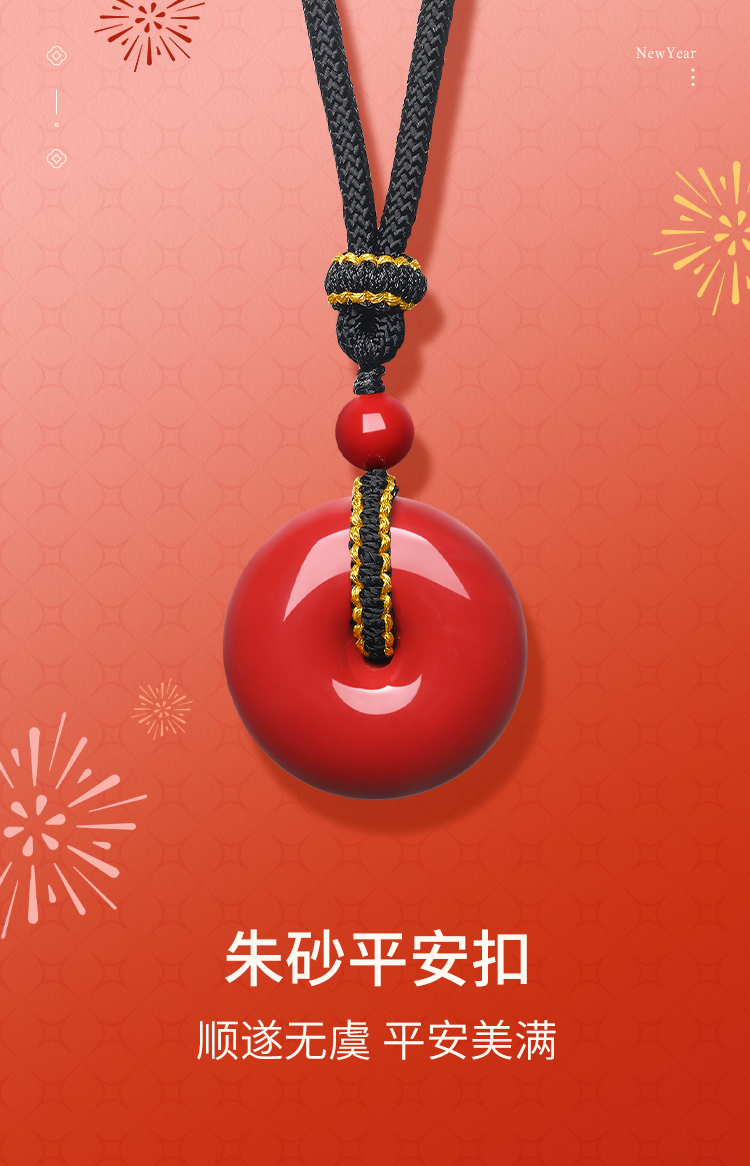 周六福朱砂项链男女款平安扣吊坠挂件本命年送女友礼物