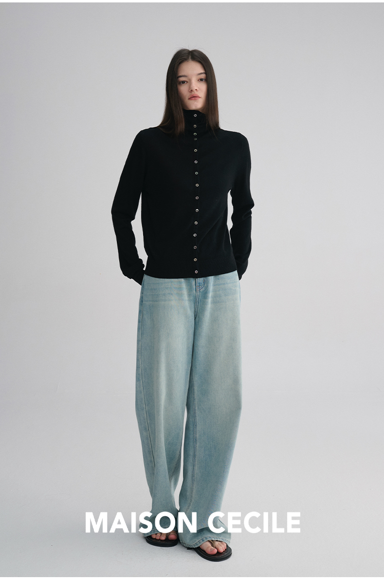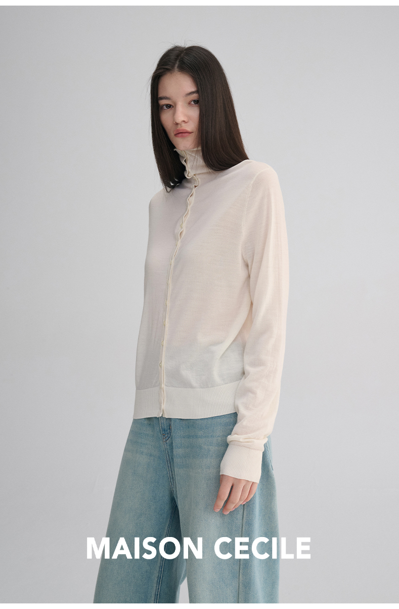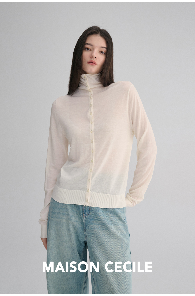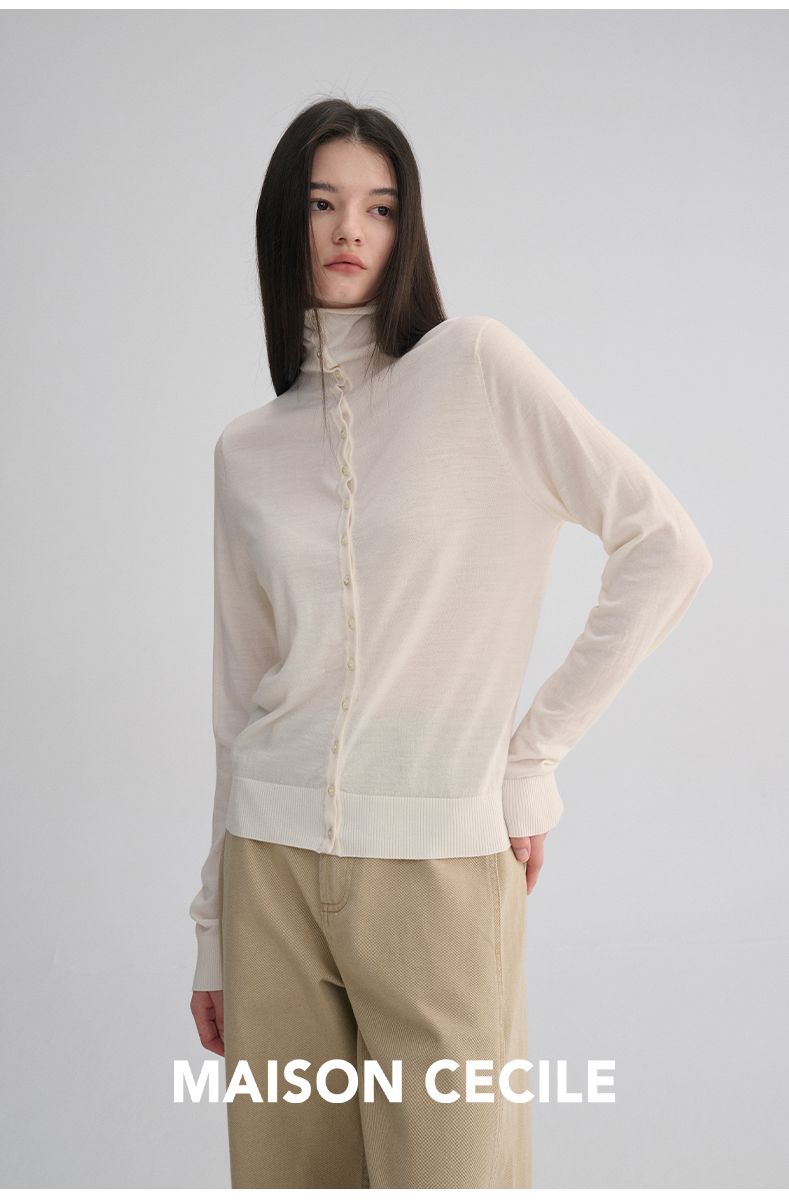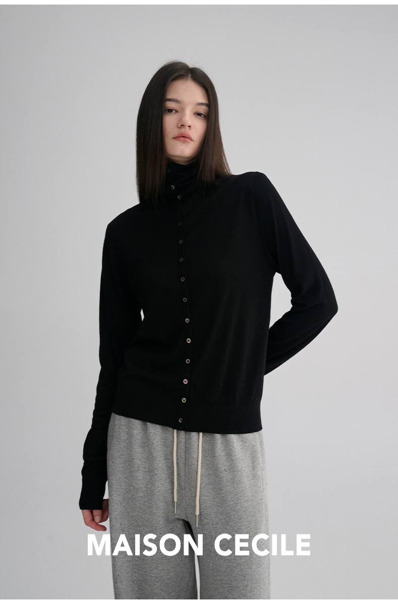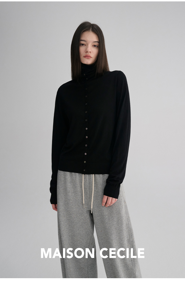 MAISON CECILE 两色|18针翻领/高领两穿软糯羊毛设计感针织开衫