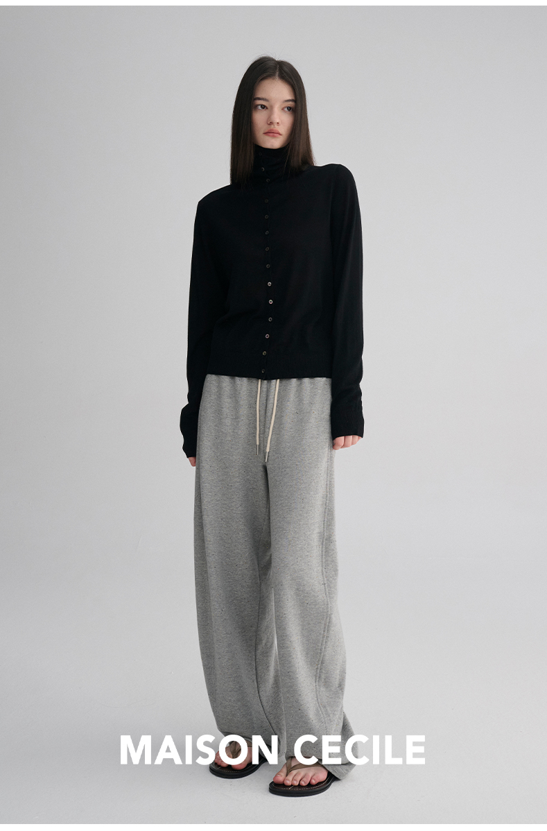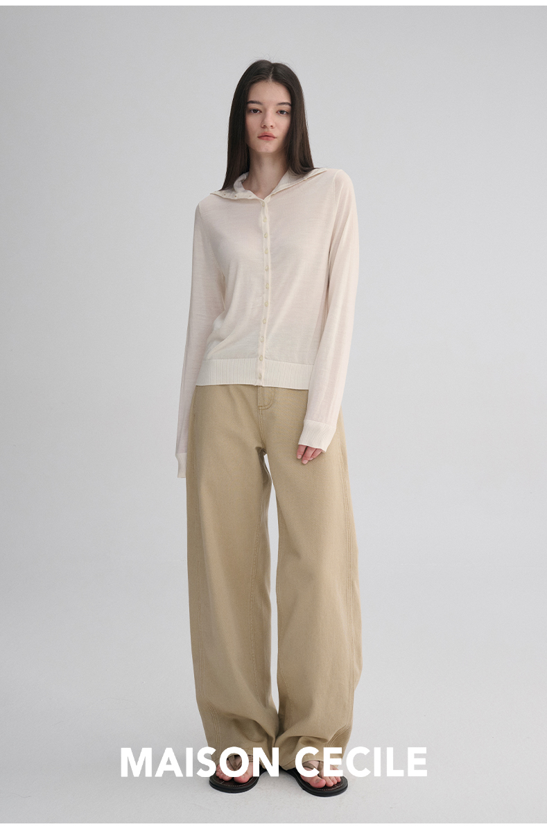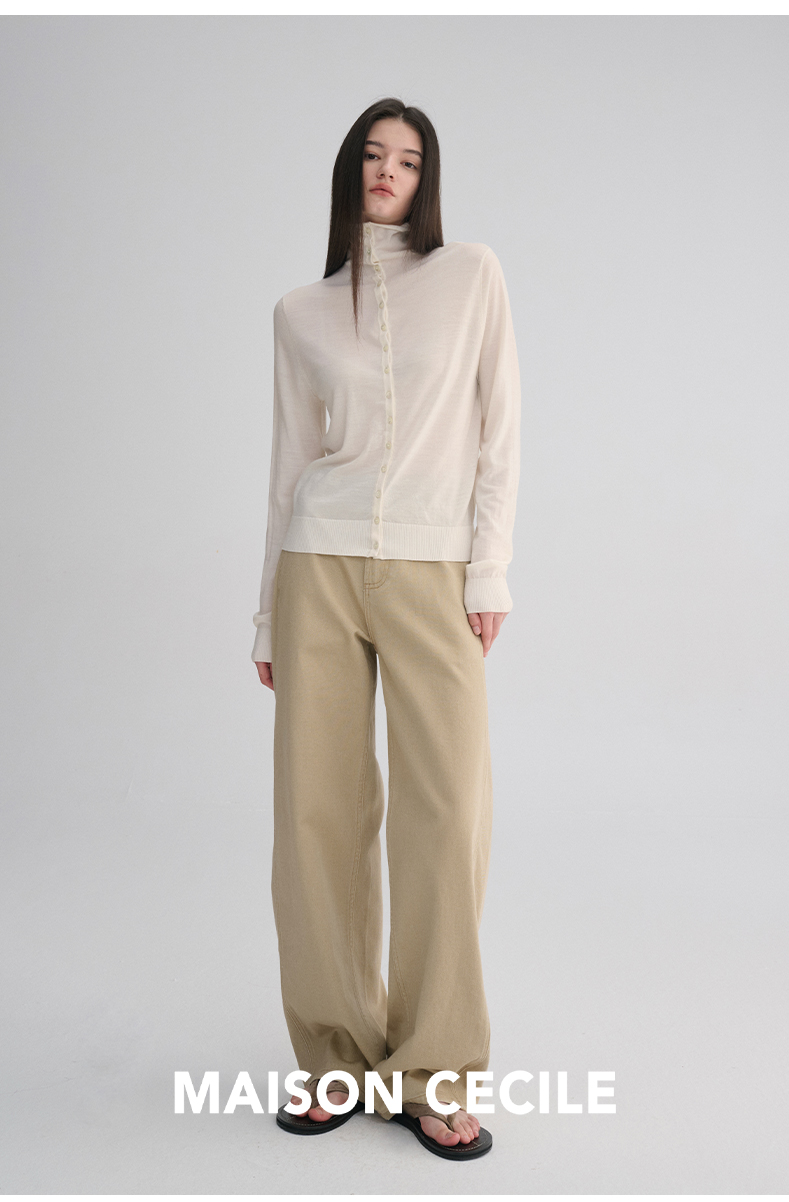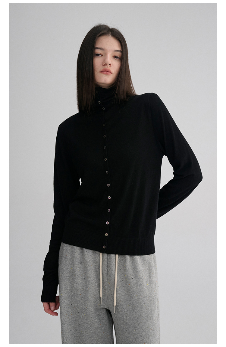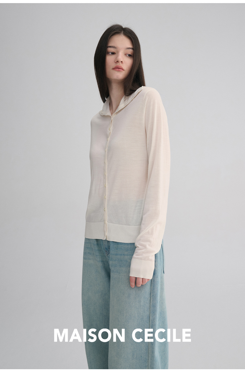 MAISON CECILE 两色|18针翻领/高领两穿软糯羊毛设计感针织开衫