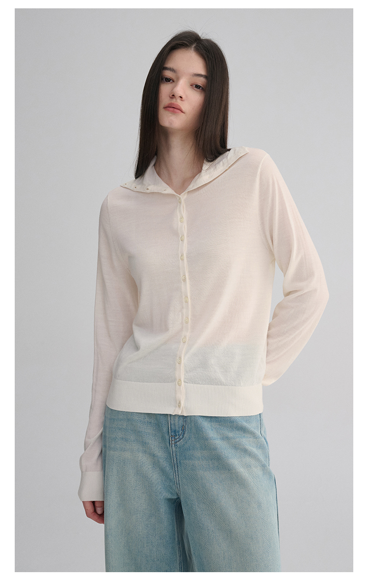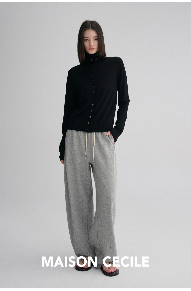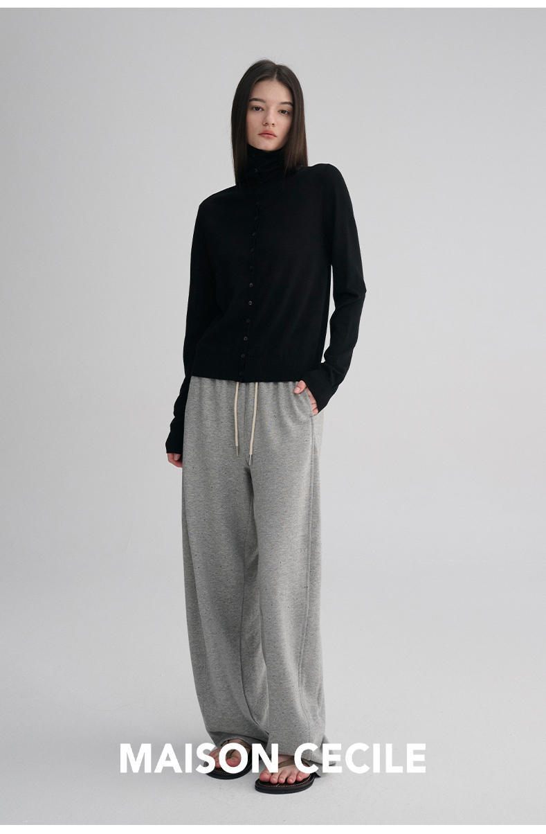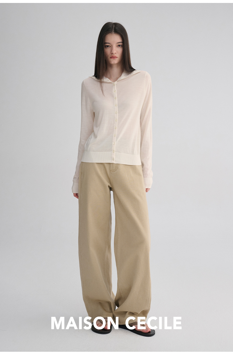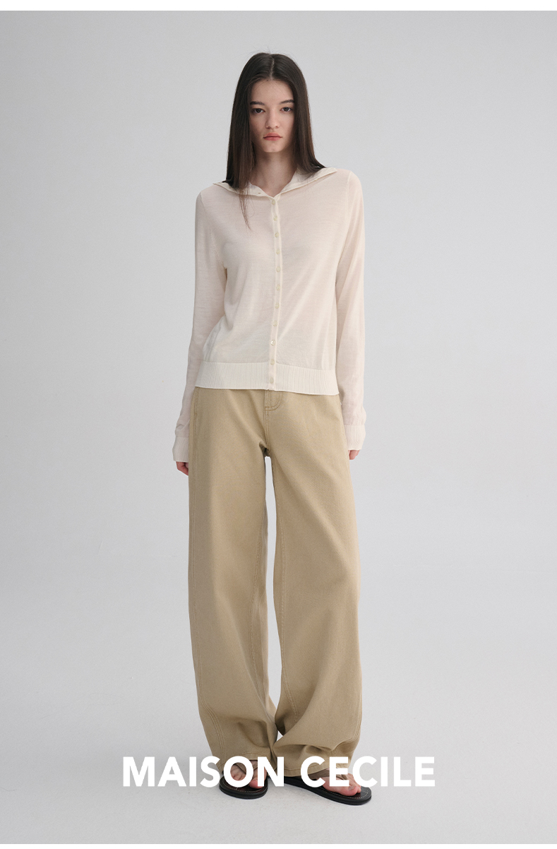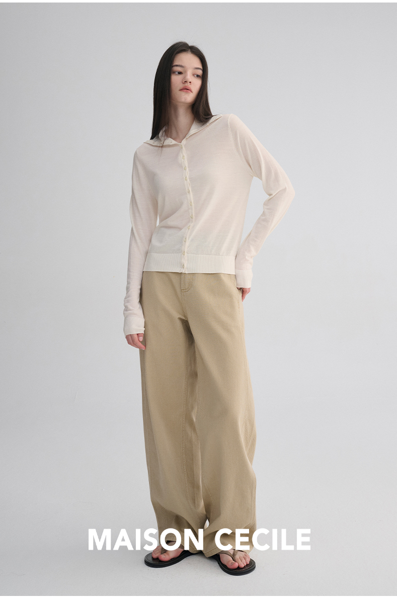 MAISON CECILE 两色|18针翻领/高领两穿软糯羊毛设计感针织开衫