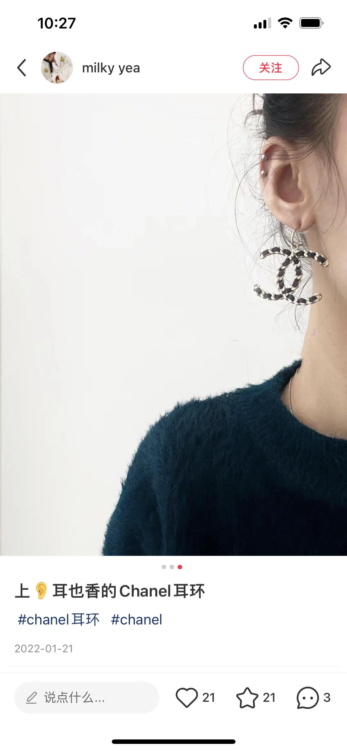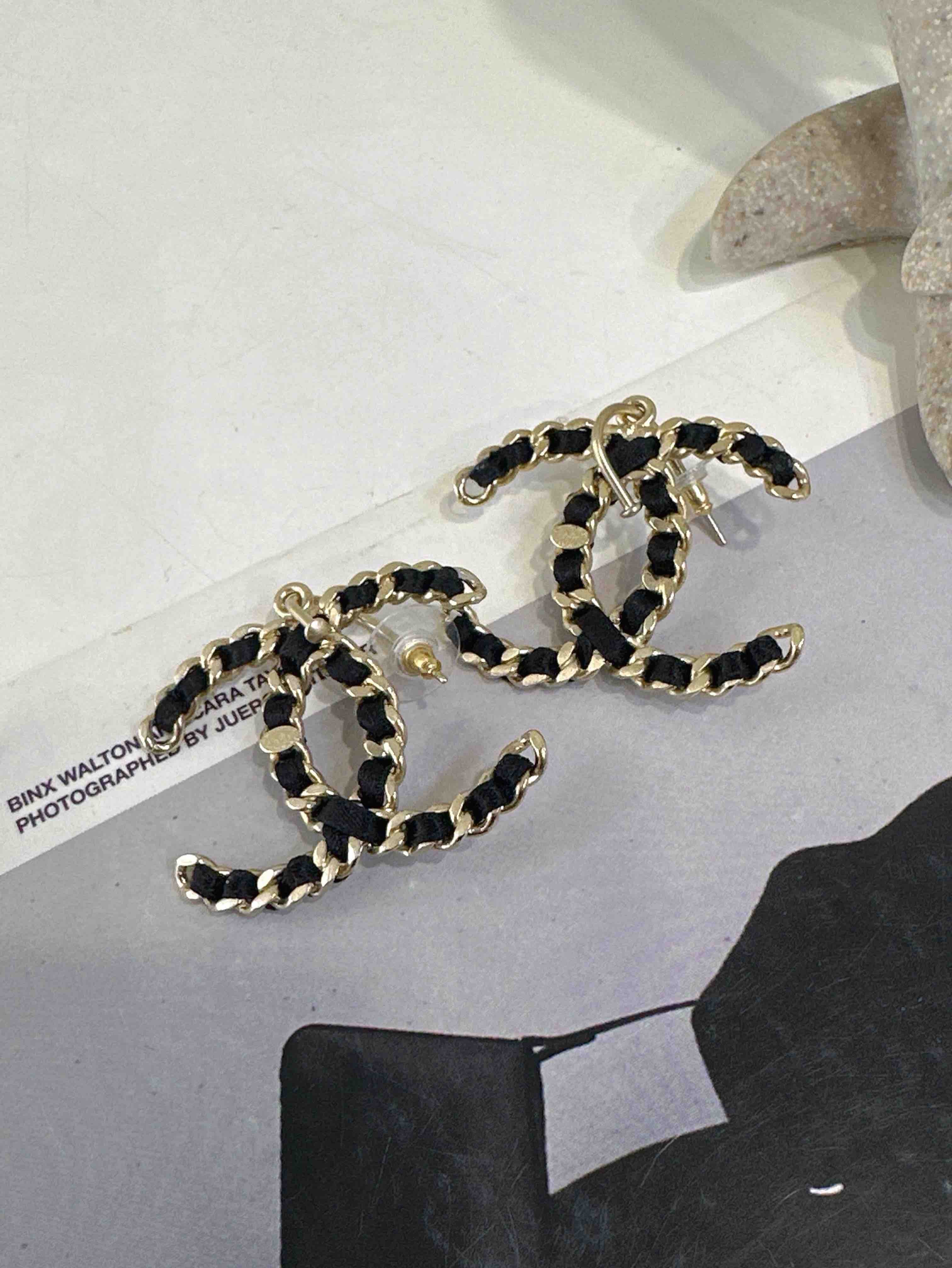 【商品详情】正品二手 Chanel 黑金 编织 双C耳环🛶 97新 4×3 金属微微使用感 绝美大双C耳环