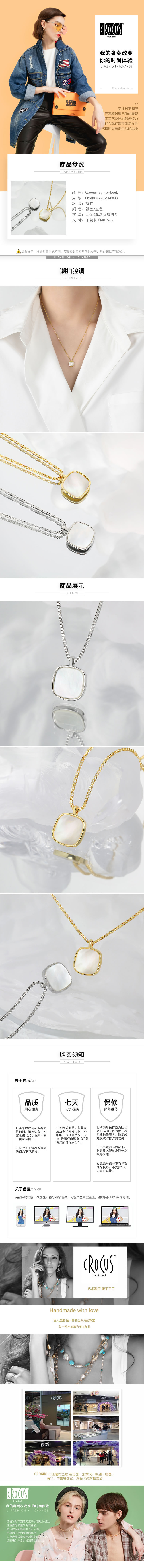 CROCUS Good LUCK白贝母方形项链