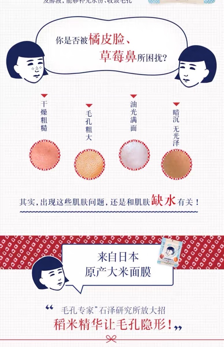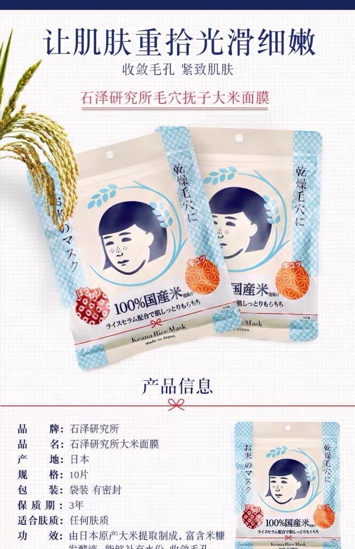 1、产品名称:日本石泽研究所/毛孔抚子稻米大米面膜