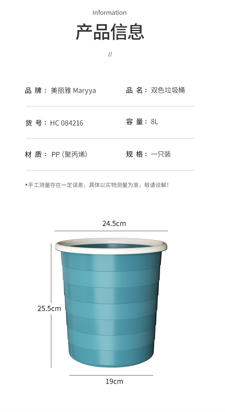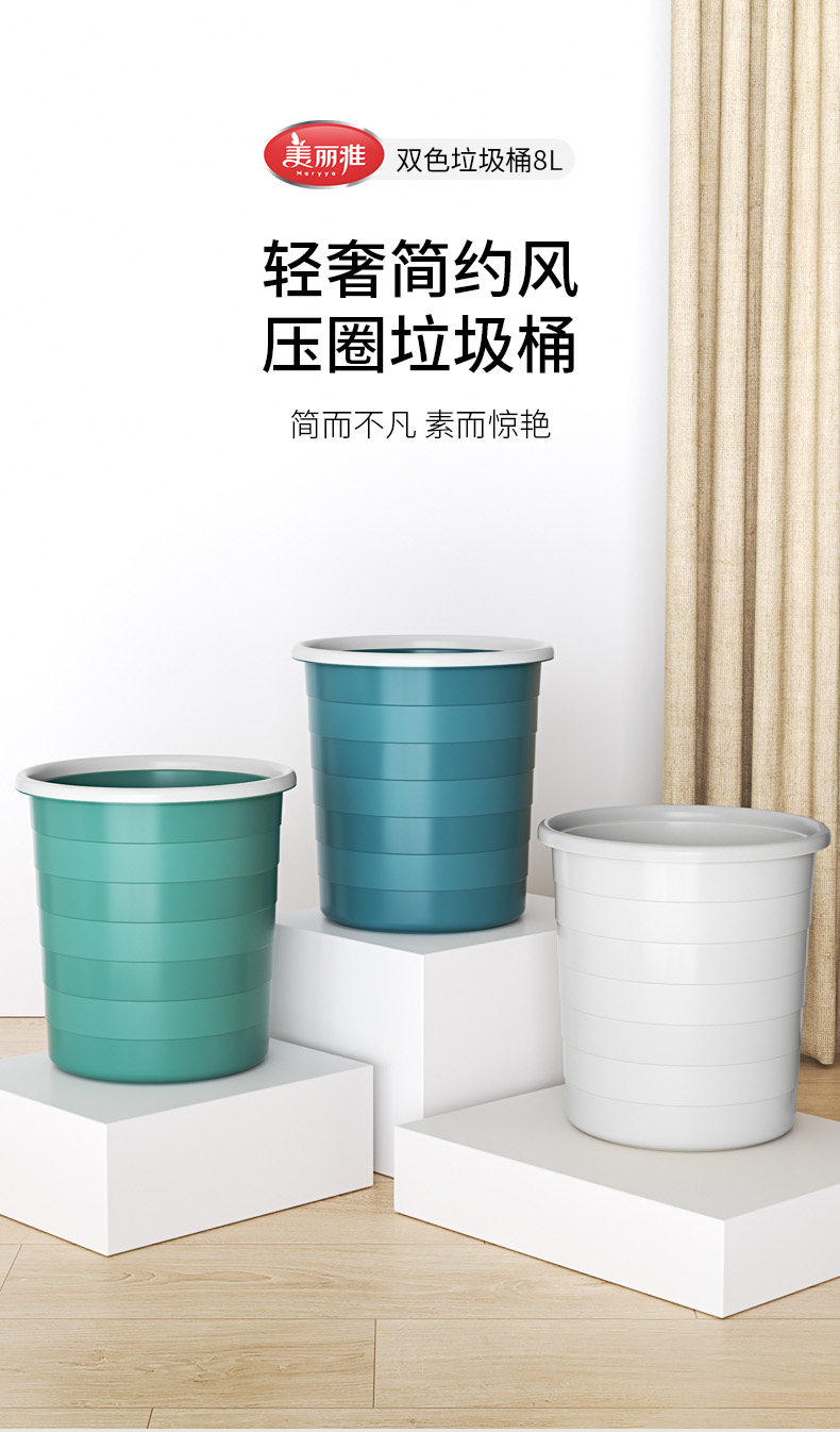 【批发】美丽雅时尚带压圈双色垃圾桶颜色随机 1个