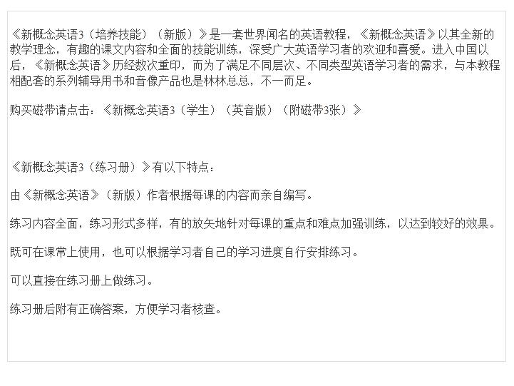 新概念英语3英语初阶学生用书+练习册 不含音频 亚历山大/何其莘 正版外语学习工具书 中小学英语外语零基础自学