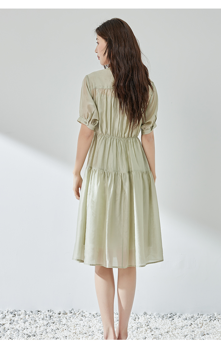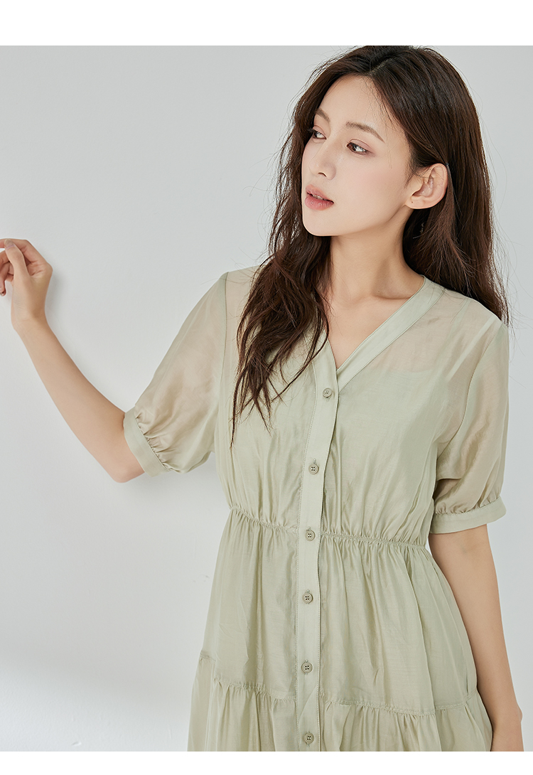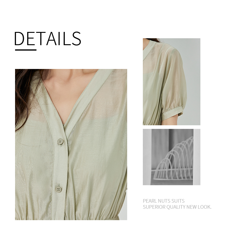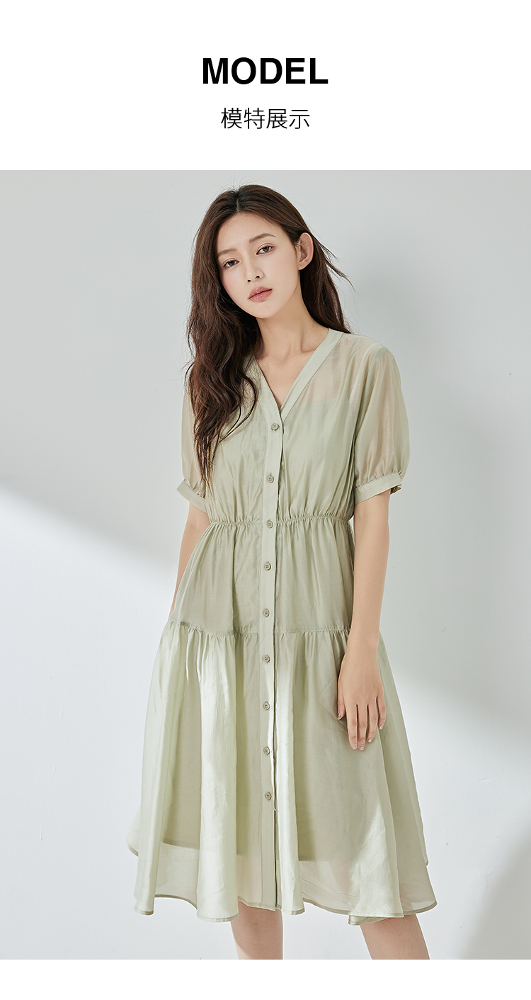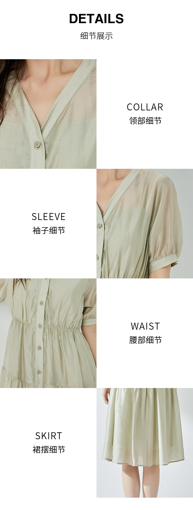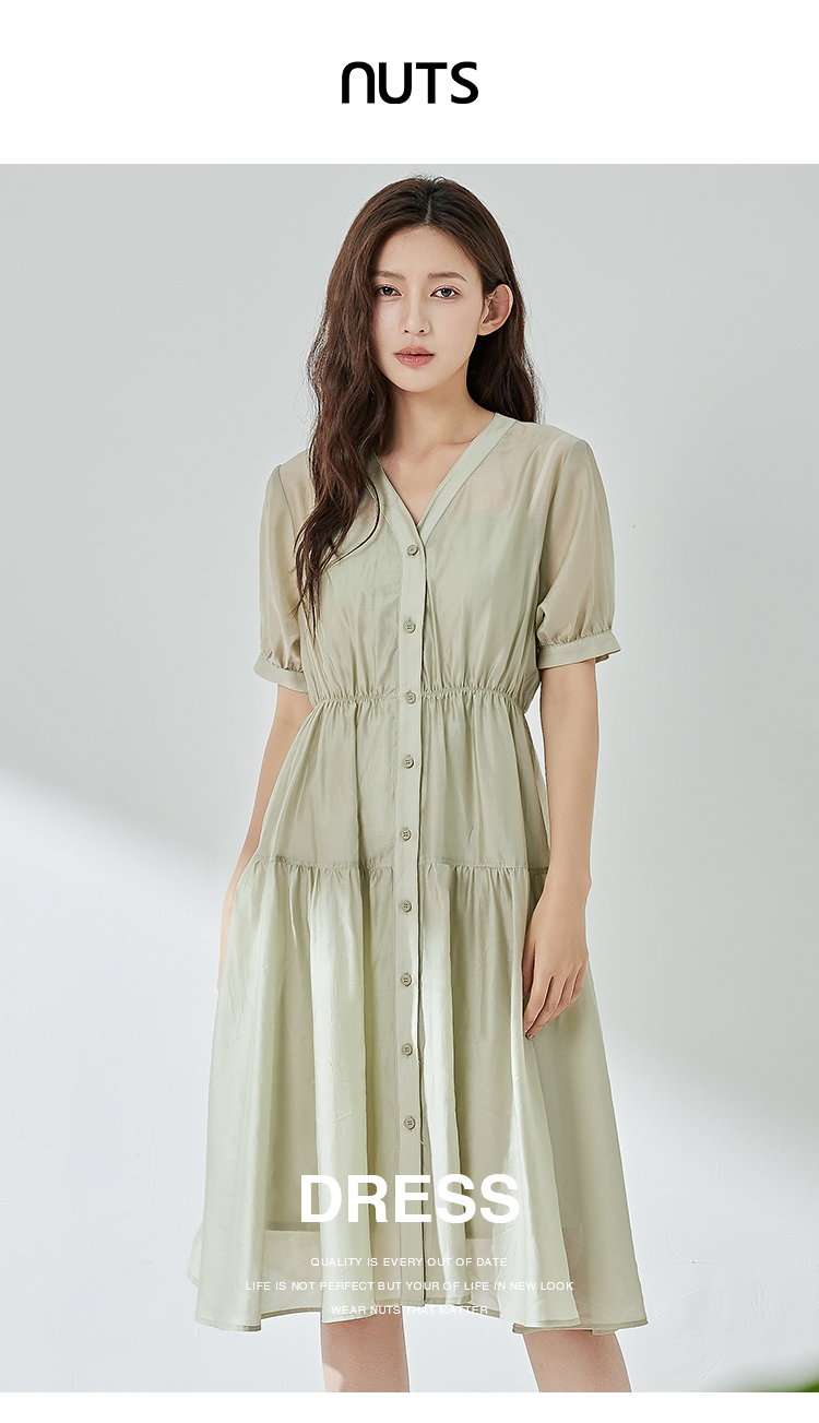 NUTS夏季新品时尚优雅修身气质V领收腰显瘦短袖连衣裙323101053B