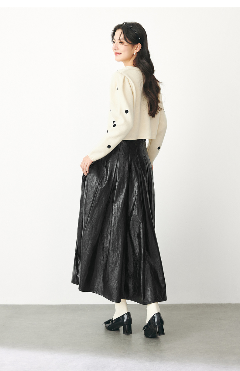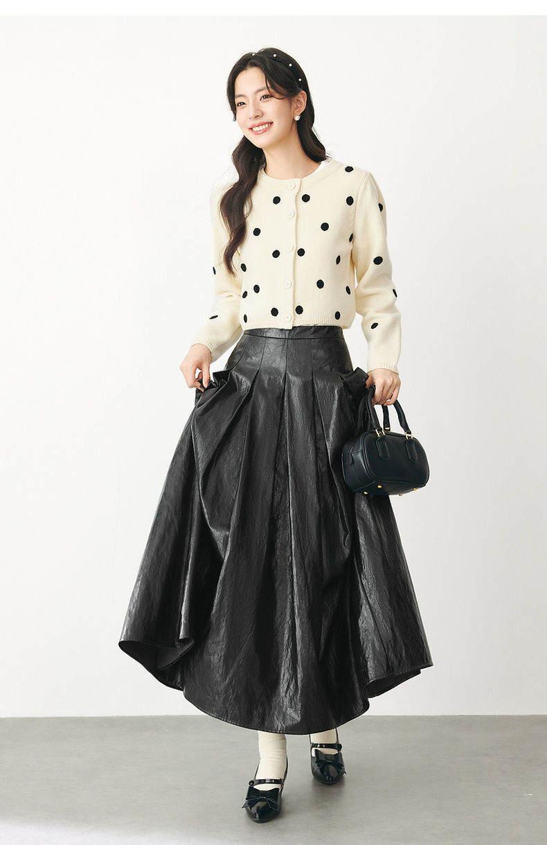 【严选】诗凡黎春撞色趣味波点短款针织衫SF1230441