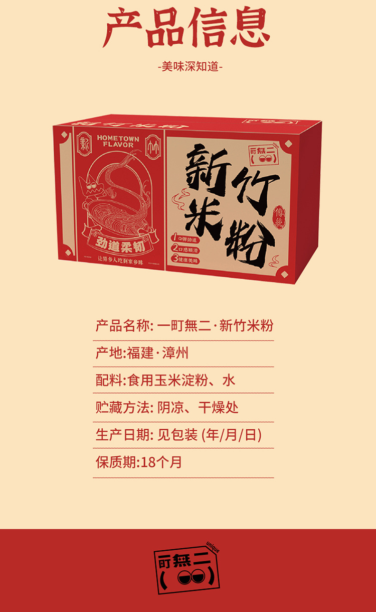 【品名】一町無二-新竹米粉 【规格】2.5kg 【配料】玉米淀粉、水 【产地/发货地】福建·漳州 【产品标准证号】Q/ZCXS 0001S 【食品生产许可证号】SC12335060300762 【贮藏方法】阴凉、干燥处 【生产日期】最新日期(具体见包装) 【保质期】12个月 【加邮地区】深圳北京上海+1 海南+1.5 甘肃宁夏青海内蒙+8 新疆西藏+20 【售后须知】 1.关于退换货:食品无品质问题不支持7天无理由退换,请谅解。 2.售后时效:若有问题请在签收24小时内将产品+面单同框拍照反馈售后,超过24小时不予以处理。 3.关于退单:货物发出后拦截会产生拦截费用,产品发出后拦截退单和拒收由顾客承担费用。 4.关于赔付:因买家地址不详/有误,或修改地址及联系不上等造成的送货延迟导致物品出问题,不予以赔偿。 5.关于包装:产品包装为纸箱+内膜袋,快递运输过程中,外箱若因挤压等原因导致破损变形但不影响食品本身的情况,不在理赔范围内
