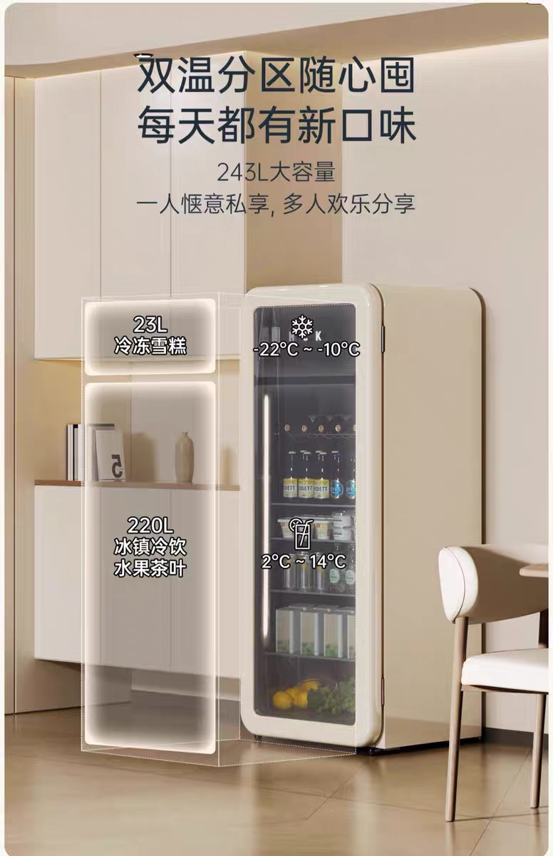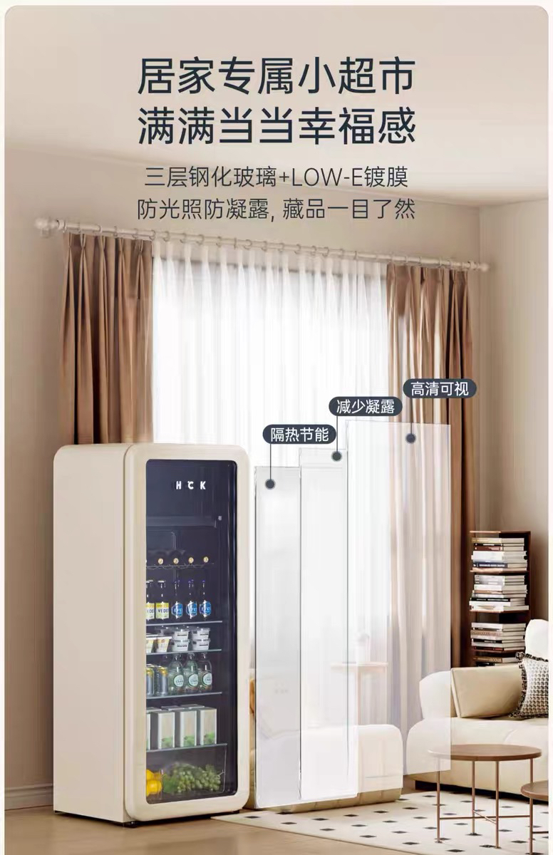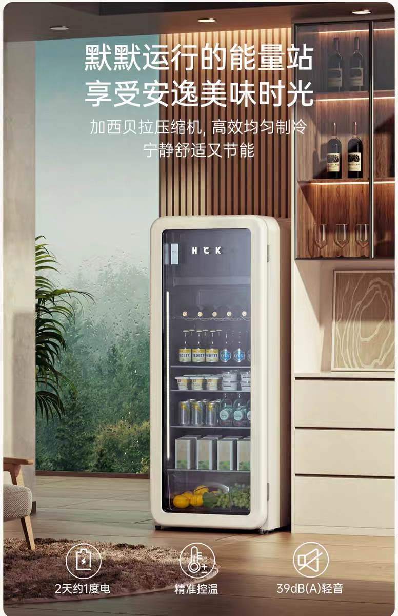 HCK哈士奇SC-330RDS冰吧墩墩吧Pro冷冻冷藏柜家用客厅小型冰箱复古办公室
