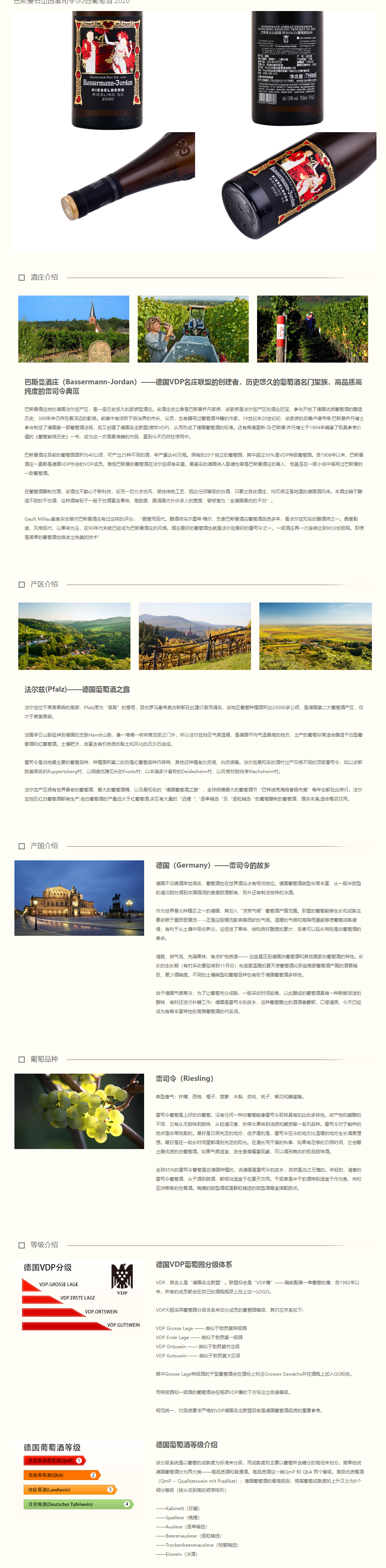 德国-巴斯曼石山园雷司令GG白葡萄酒2020年