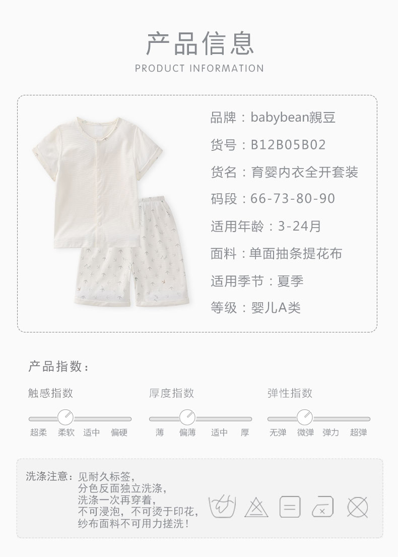 babybean亲豆婴儿服男女宝宝空调服夏季薄款居家服纯棉短袖套装B12B05B02