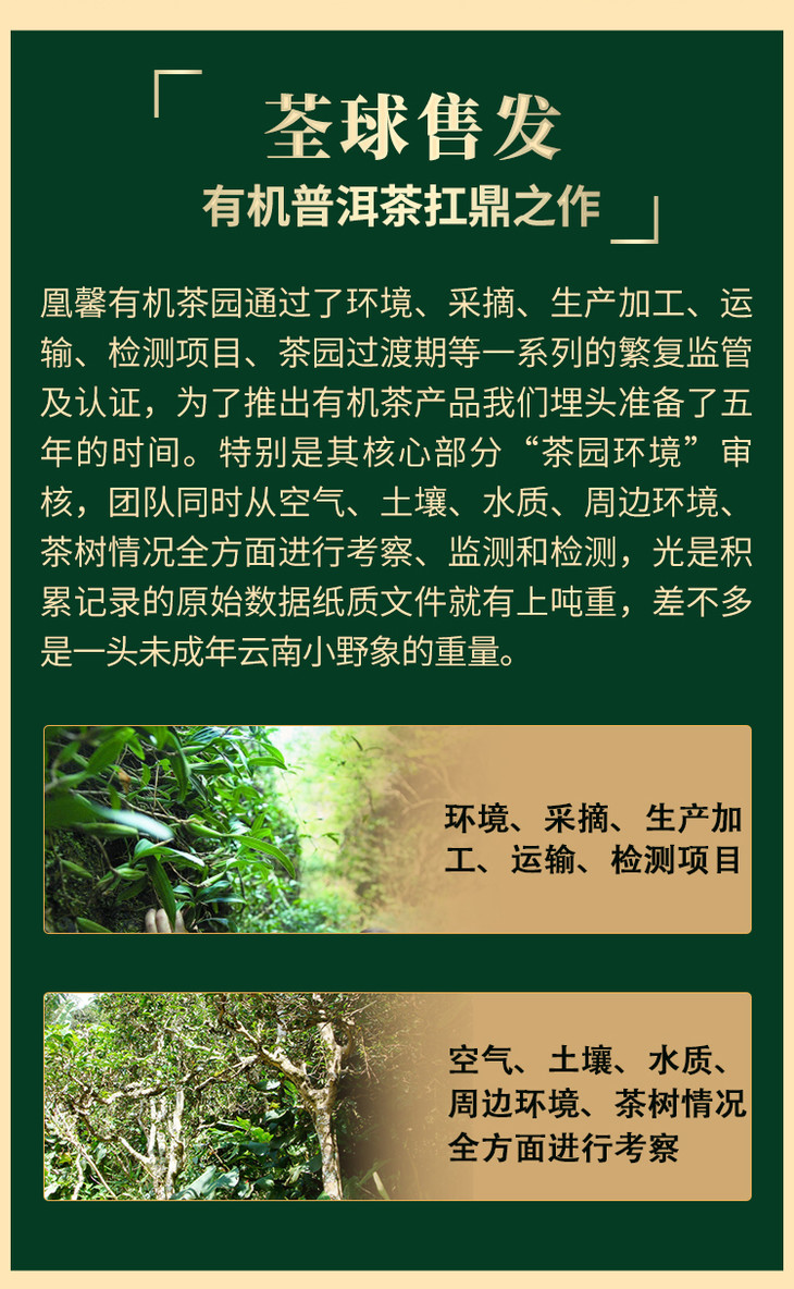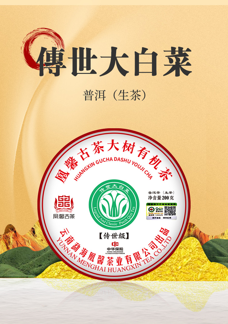 凰馨古茶【珍藏贡茶有机茶】普洱生茶2022年古树春茶357克.