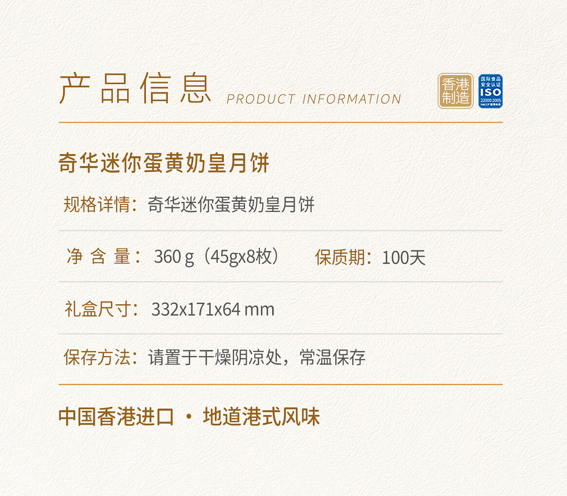 【一件包邮】奇华迷你蛋黄奶皇月饼360g 奶香四溢口感柔滑加热品尝口感更佳 甘肃/青海/内蒙古/新疆/西藏/宁夏/海南/港澳台不发货