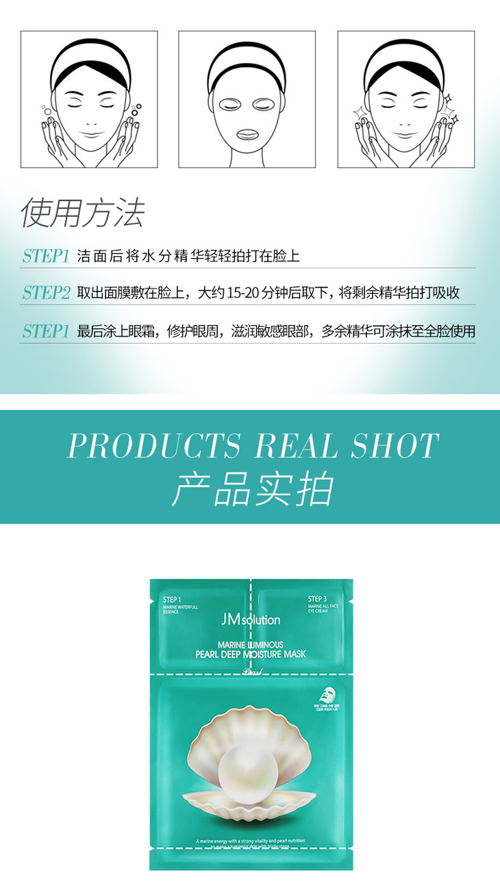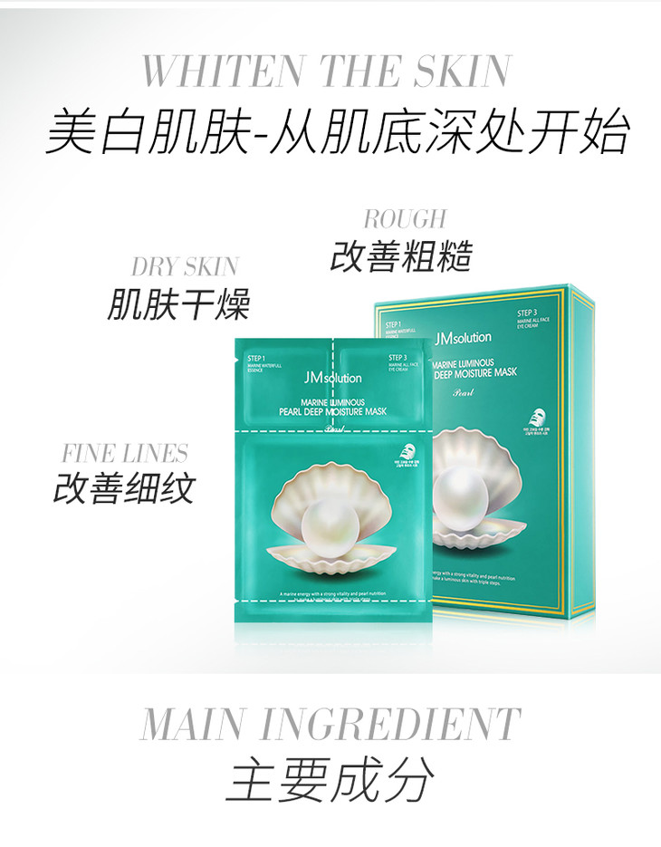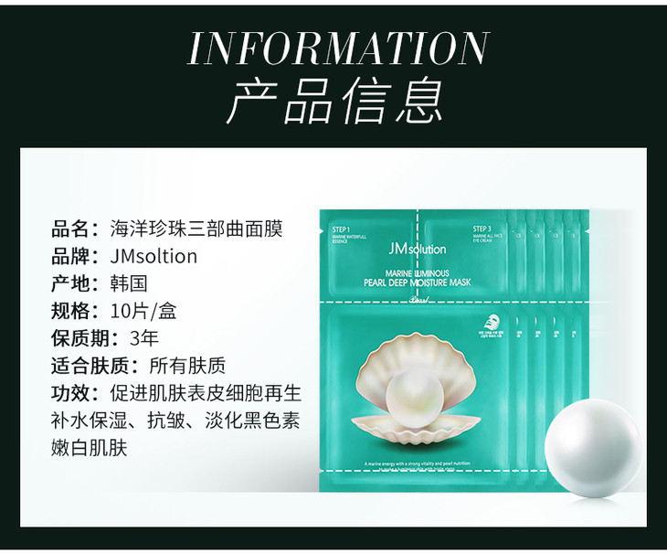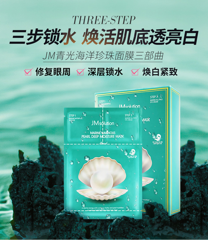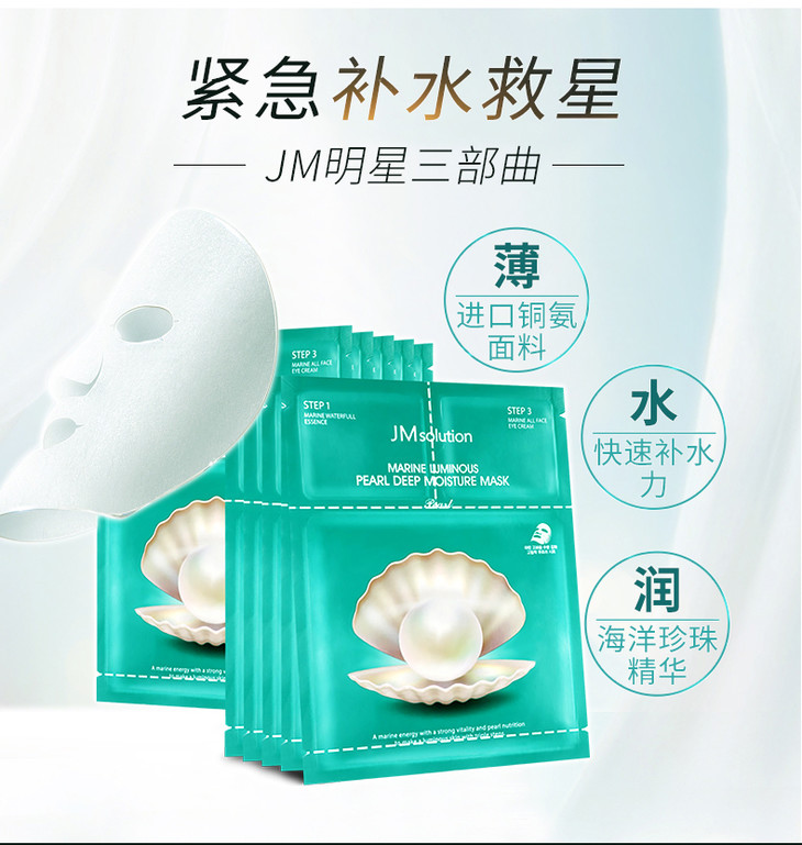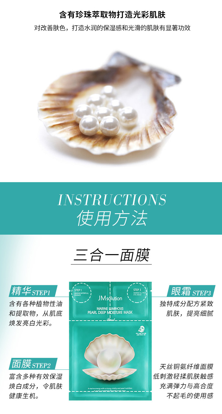 JM韩国jmsolution海洋珍珠三部曲面膜保湿补水提亮10片