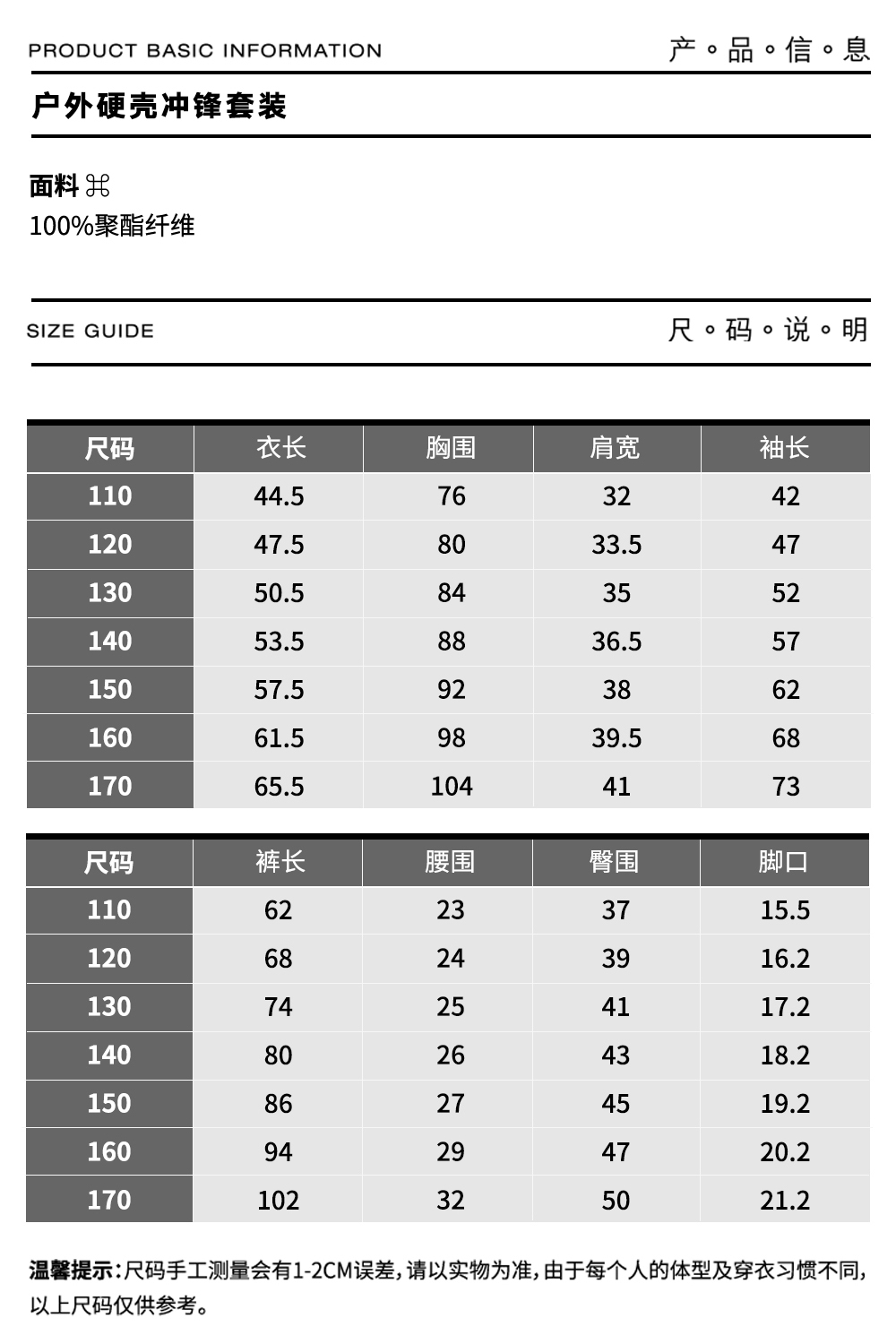 chopiyopi童装 儿童专业冲锋衣中大童学生三防徒步登山硬壳外套裤子