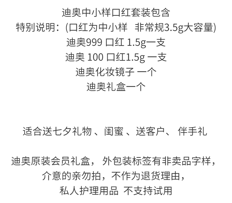 【预售 急单慎拍】DIOR 迪奥丝绒999 丝绒100 菱形妆镜 迪奥口红套装