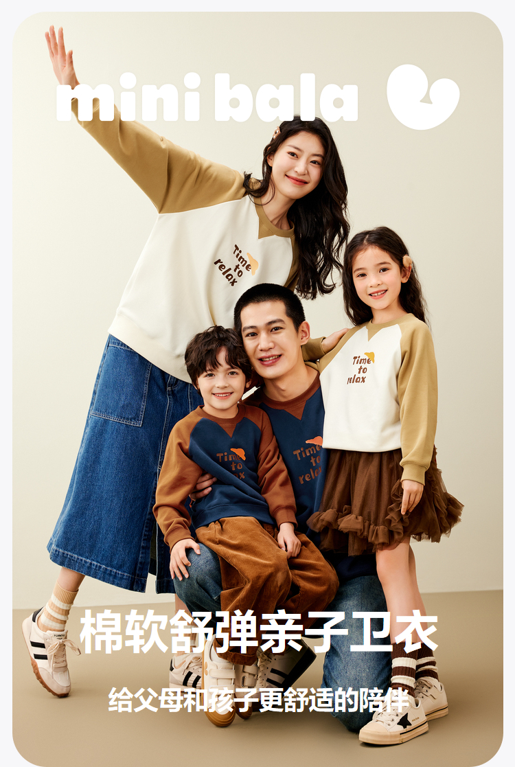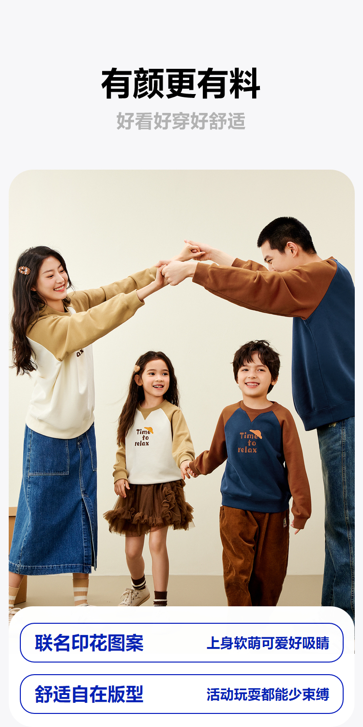 【mini亲子 儿童款】迷你巴拉男女童宝宝一家三口软弹舒适卫衣秋