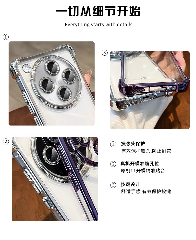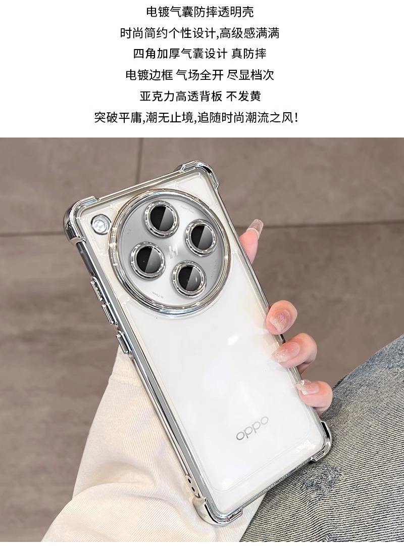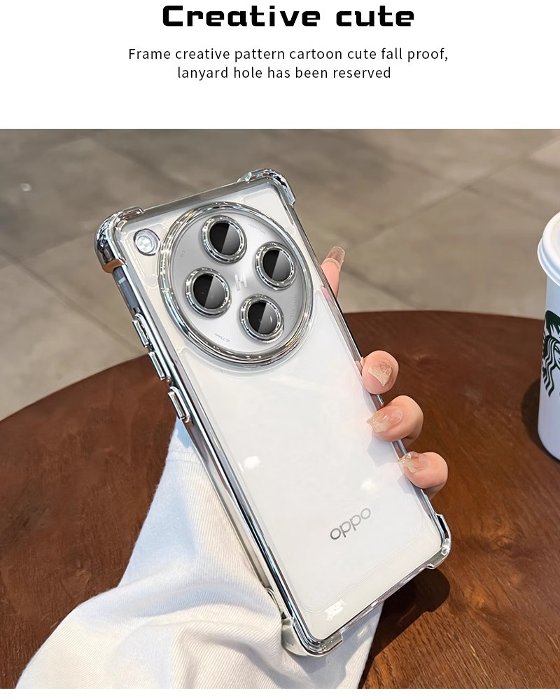 【电镀气囊防摔透明OPPO手机壳】适用OPPO FINDX8pro气囊防摔手机壳A58电镀镜头膜软壳透明保护套7。ry