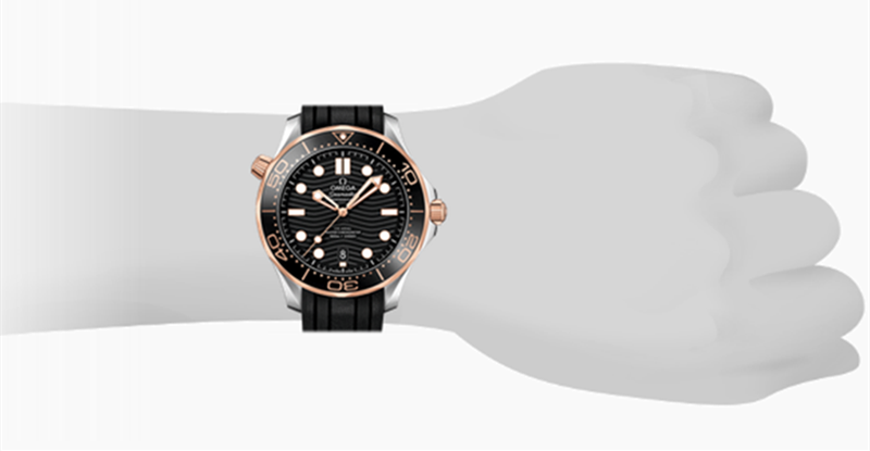 镜面材质 | 蓝宝石水晶玻璃 | 表盘 | 精钢与Sedna 18K金表壳 表圈采用黑色陶瓷,潜水刻度经 OMEGA Ceragold®技术制成。表盘亦以抛光黑色陶瓷制成,饰以激光镌刻波纹图案,6点钟位置设有日历窗口。 镂空指针和浮雕小时刻度由Sedna 18K金制成,并覆以白色Super-LumiNova夜光涂层,而排氦气阀门则以圆锥形造型呈现。 背透 |