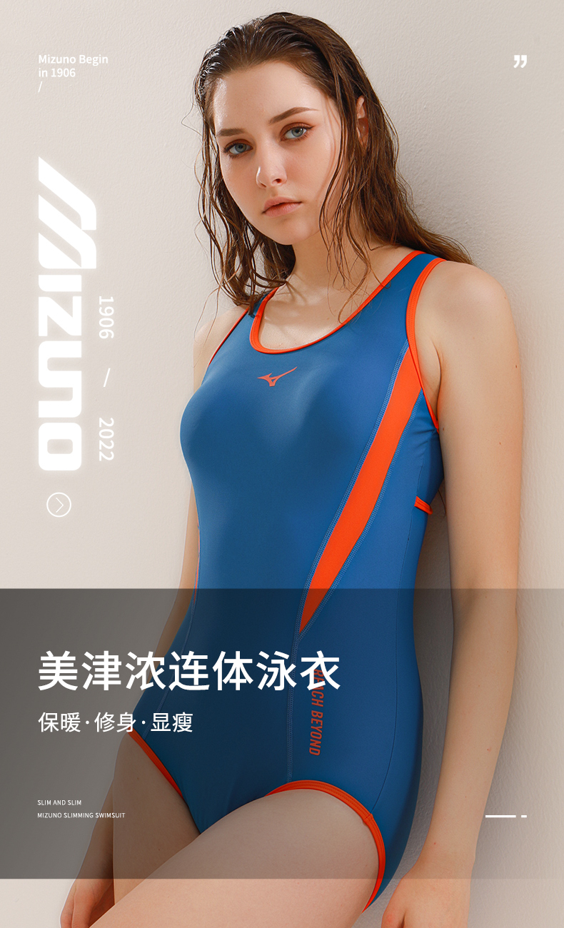 【美津浓】女士连体三角专业竞速遮肚显瘦泳衣N2CA1310