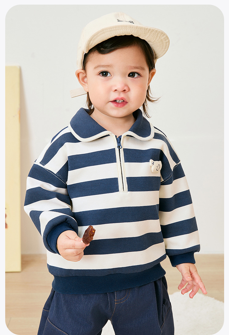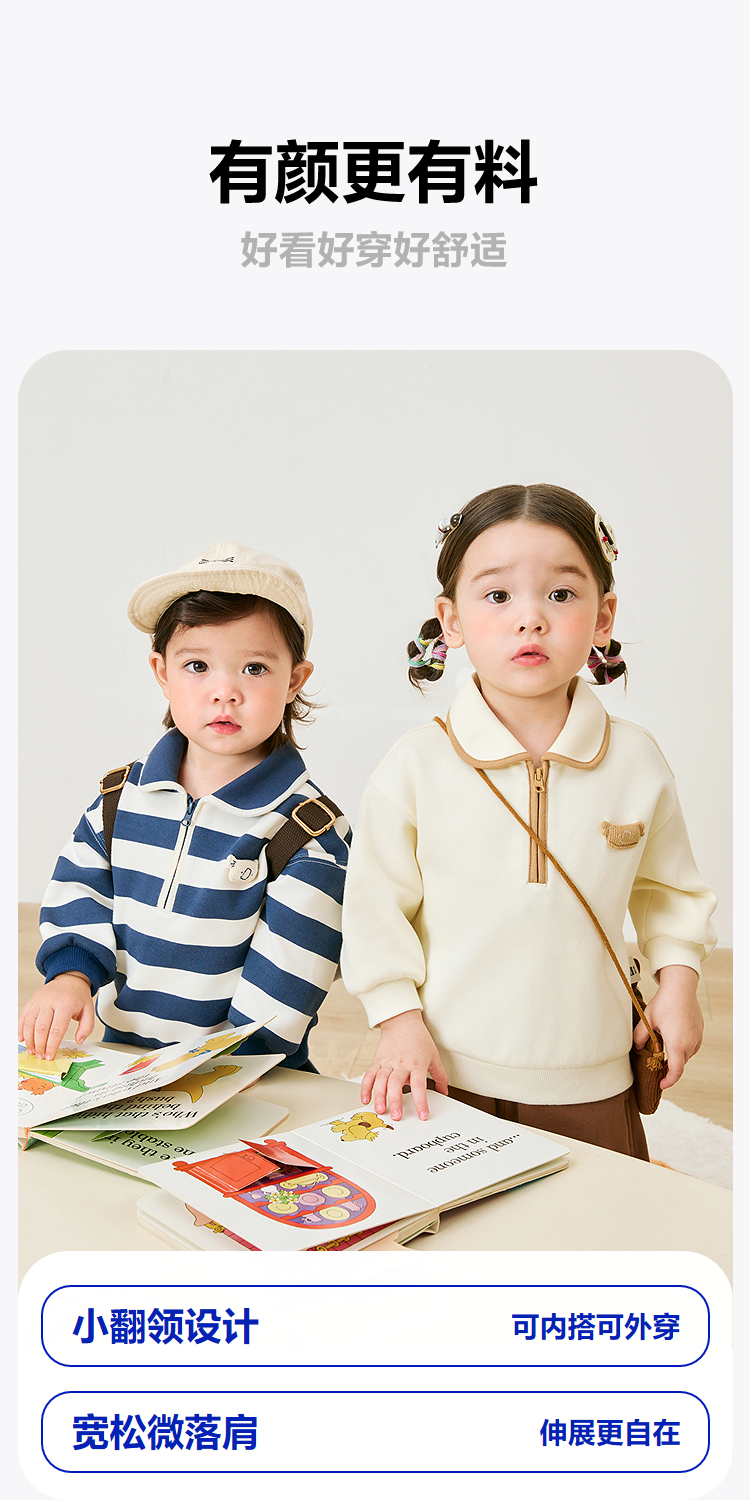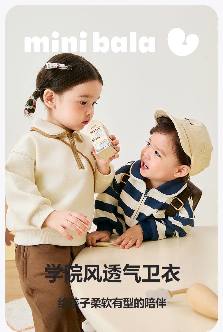 迷你巴拉男女童学院风卫衣春季新款宝宝宽松百搭复古时尚上衣