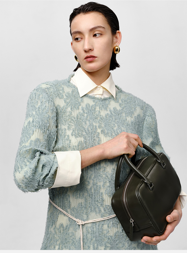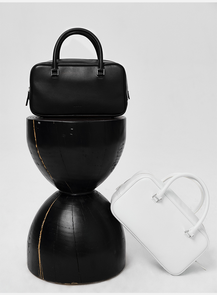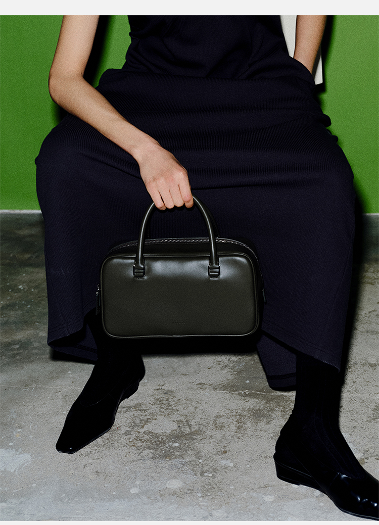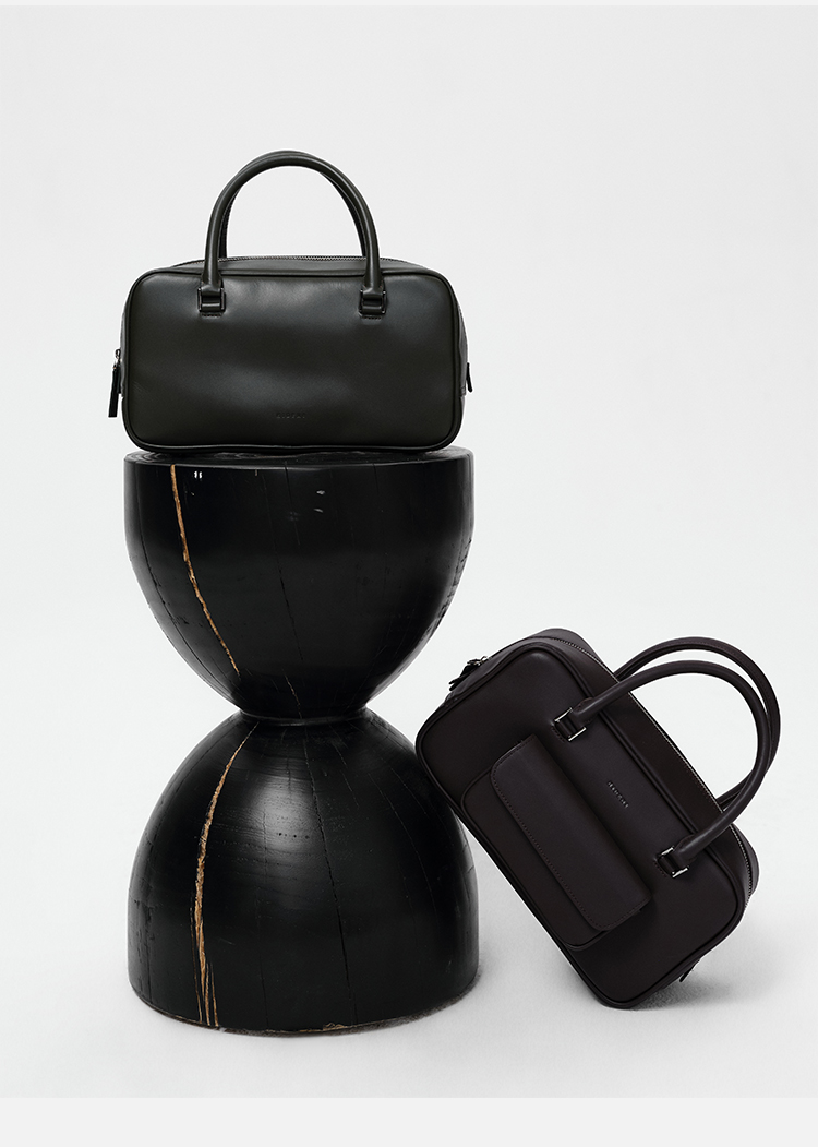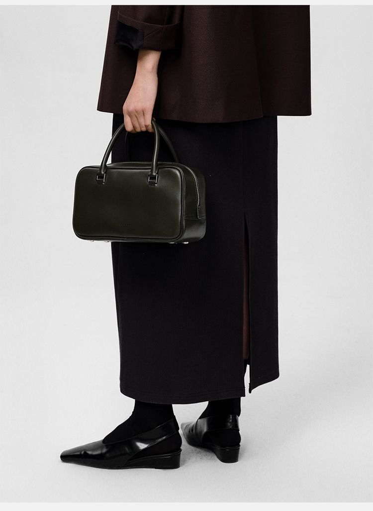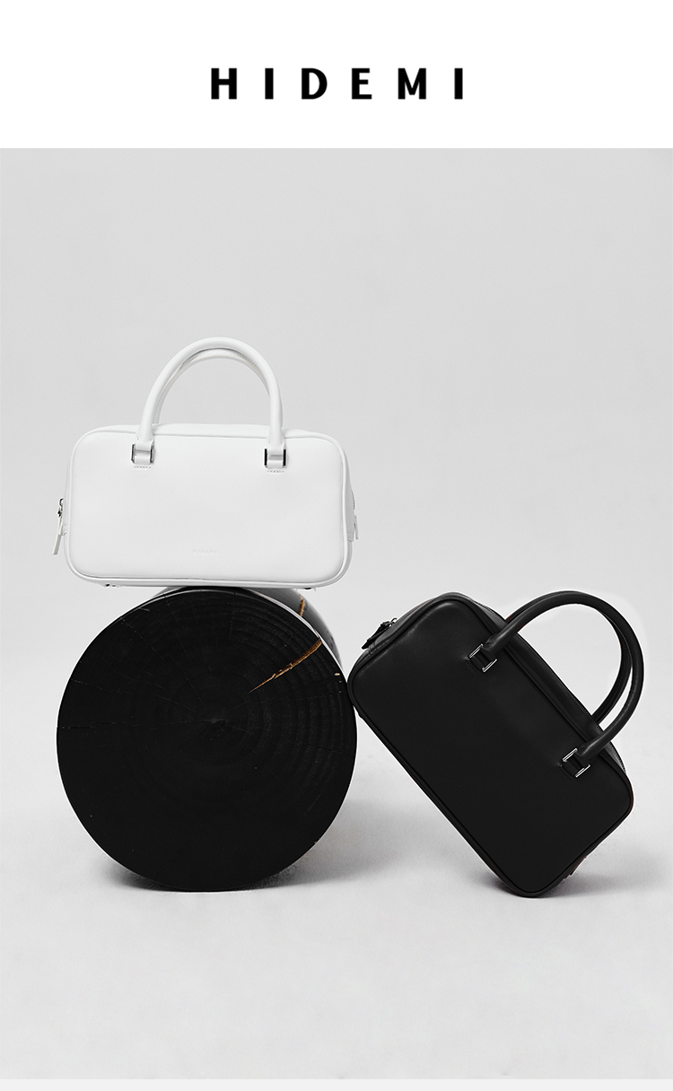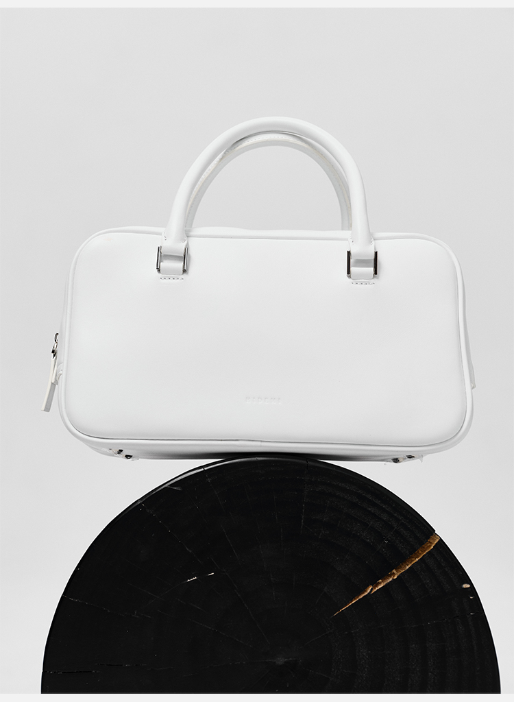 HIDEMI 牛皮波士顿包 白色/烟草灰绿