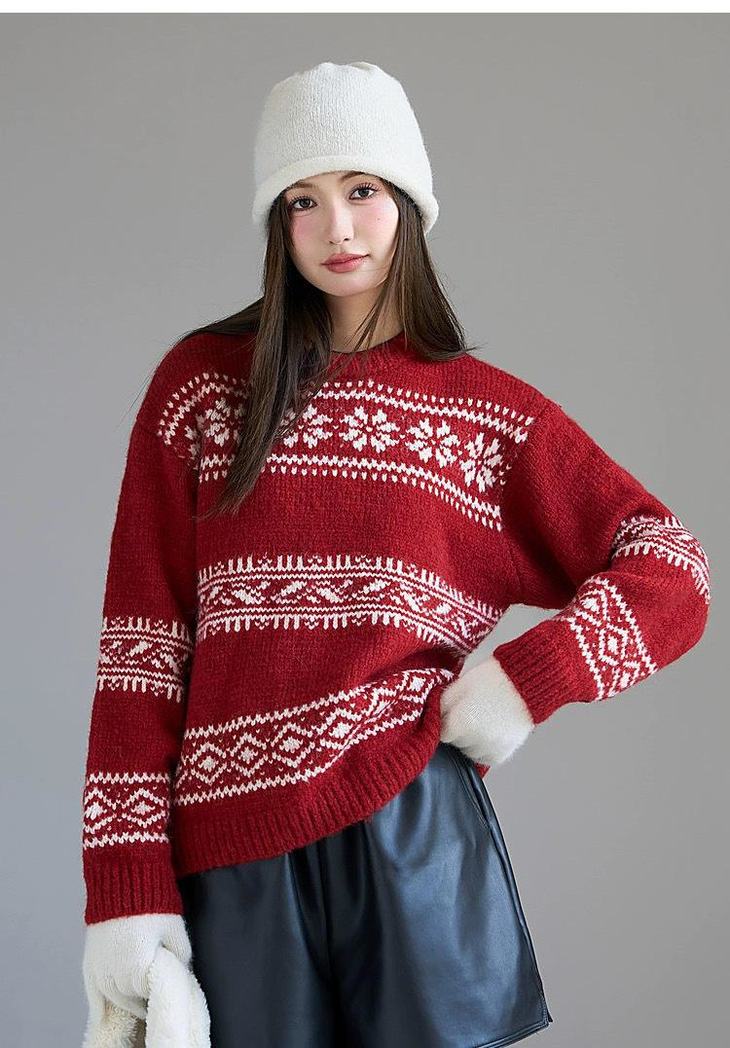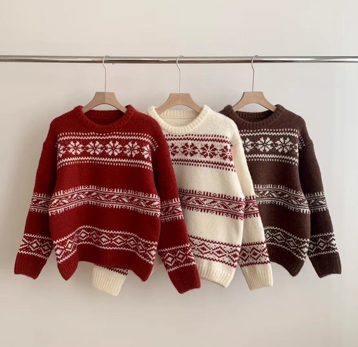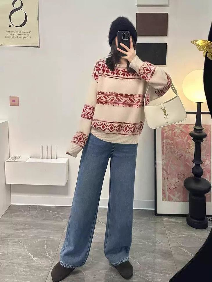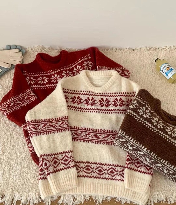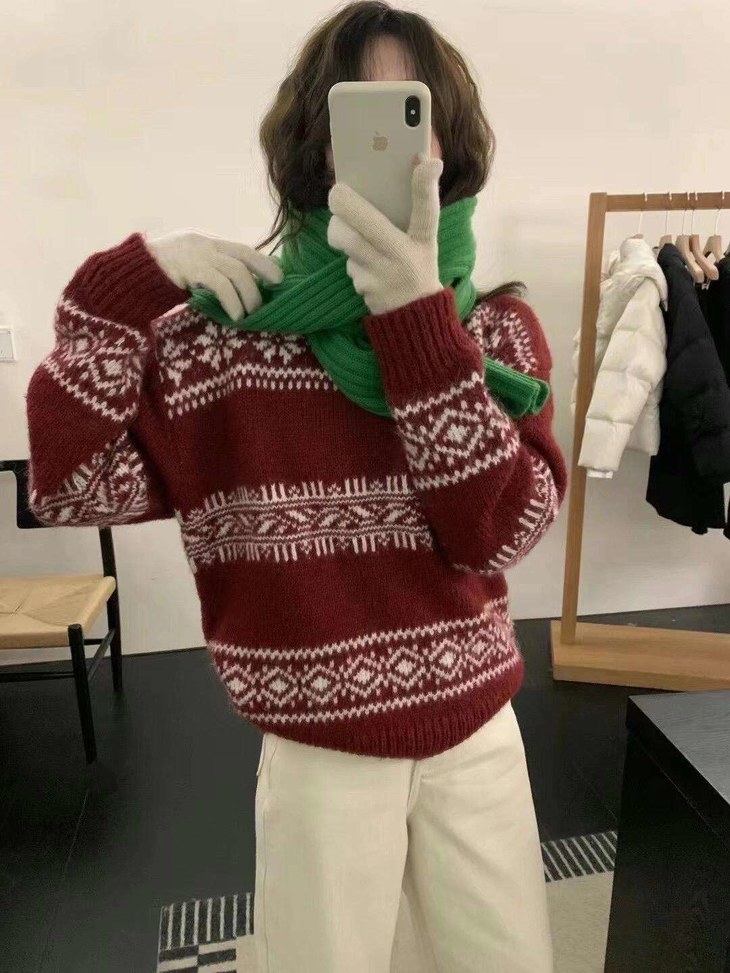 💥巨好看❗️超美费尔岛提花🌻【AUChris北欧风复古圣诞系列费尔岛毛衣AUC111801】慵懒的复古💯上身真的都很绝👍圣诞感拉满📣单穿或是秋冬搭配大衣/皮草都很适合