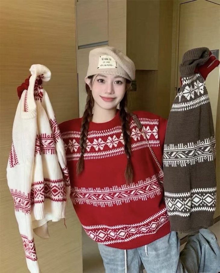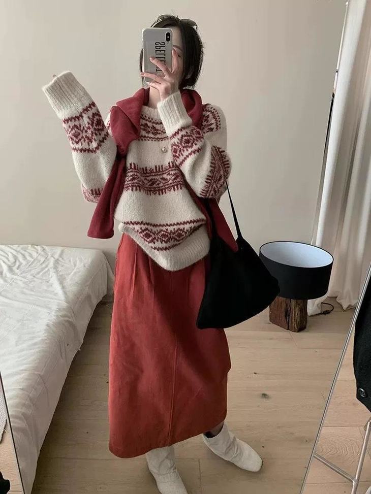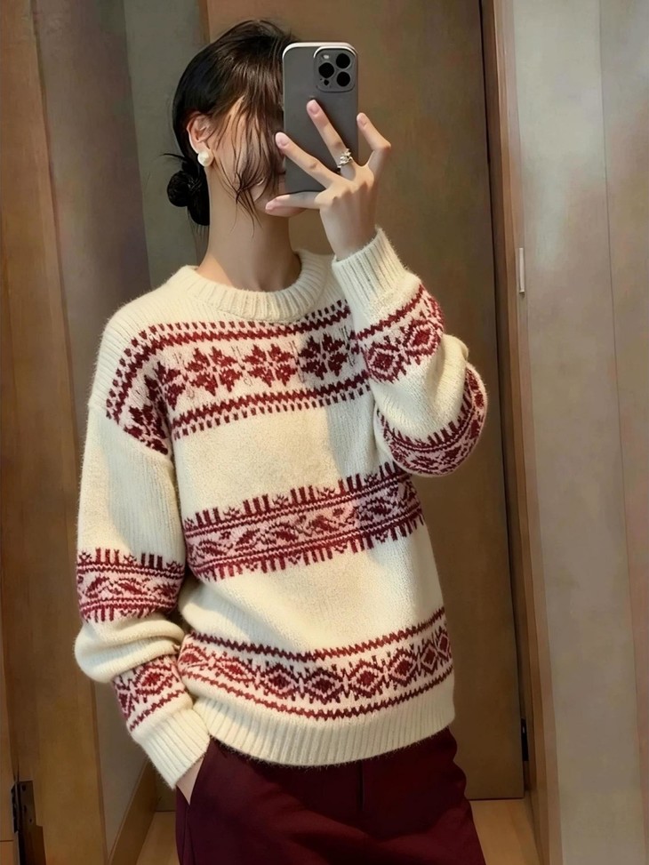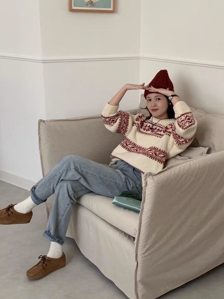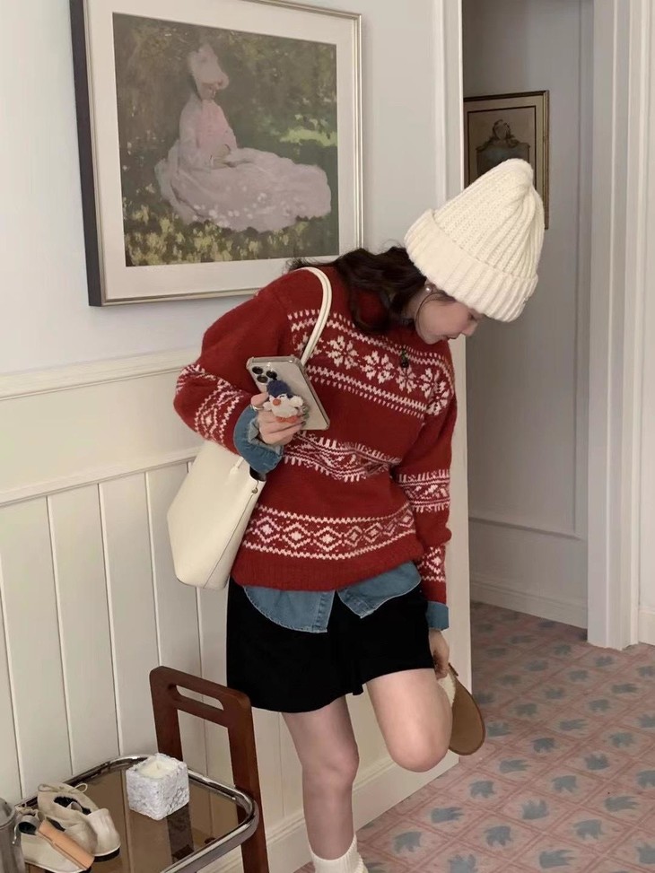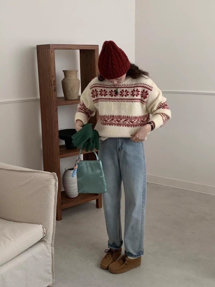随着圣诞节临近,「费尔岛毛衣」成为热门搜索词条。 复古的彩色针织单品也为节日增添了温暖与时尚感自带浓厚的节日氛围~ 在搭配风格中,复古风是首选 可搭配半裙、牛仔裤等,营造怀旧气息 这种时髦而老派的穿衣风格 展现出低调而富有格调的品味 完美呼应冬日里浓郁的节日气息,
