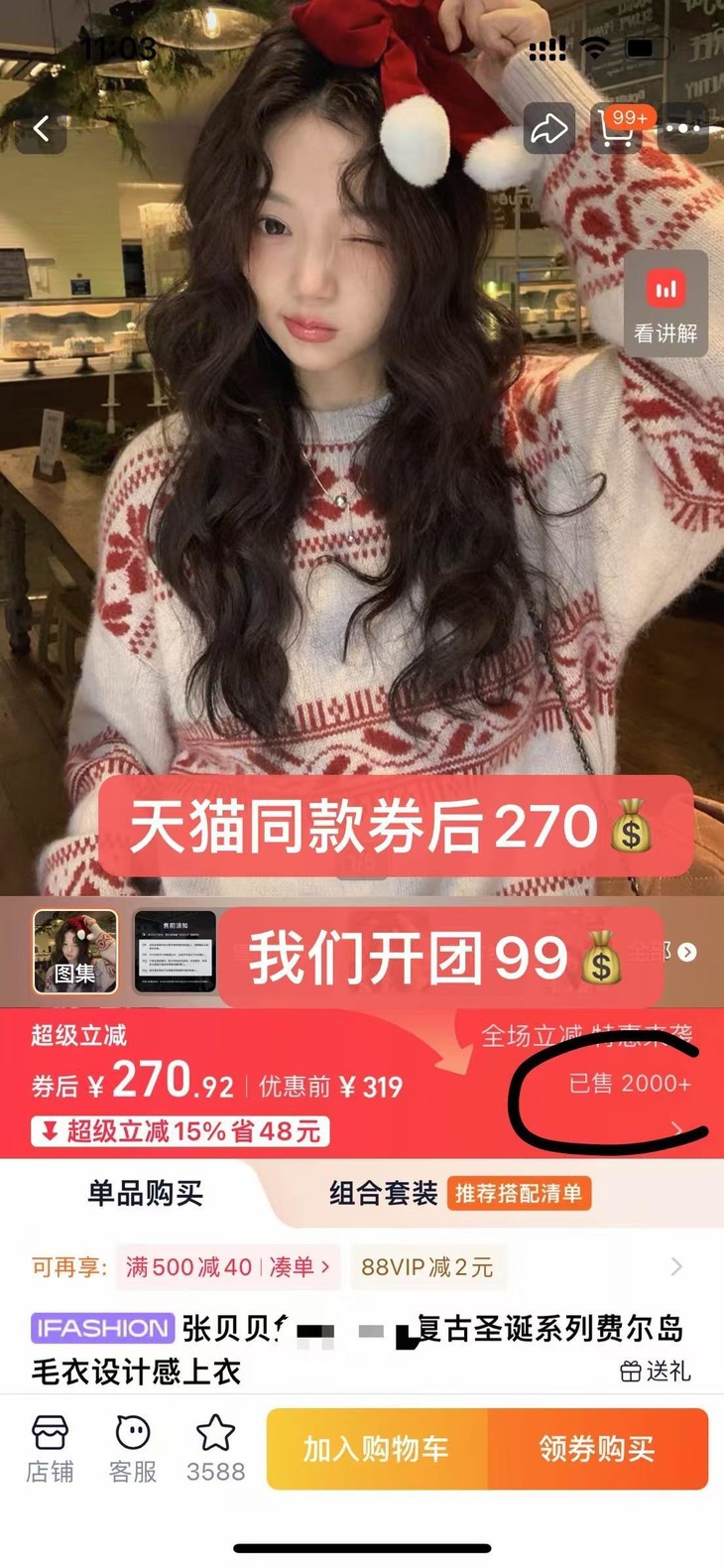 张贝贝同款,热卖2000+ 某猫同款券后270💰 我们开团99💰,立省171💰