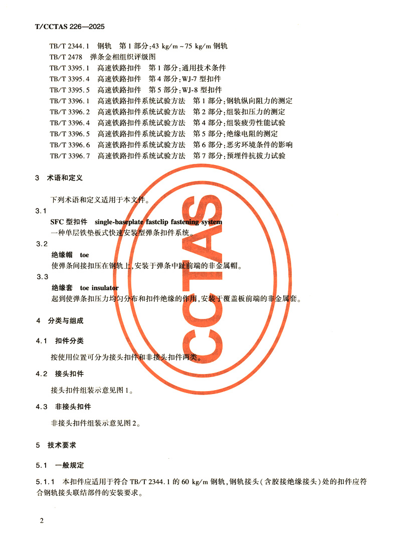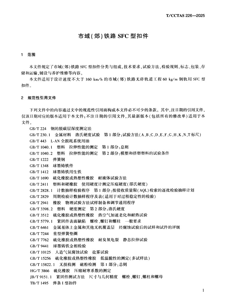 市域(郊)铁路SFC型扣件T/CCTAS 226—2025