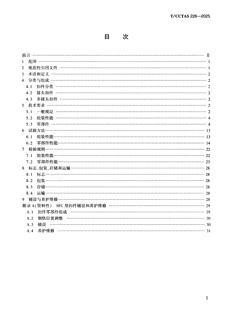 书名:市域(郊)铁路SFC型扣件T/CCTAS 226—2025