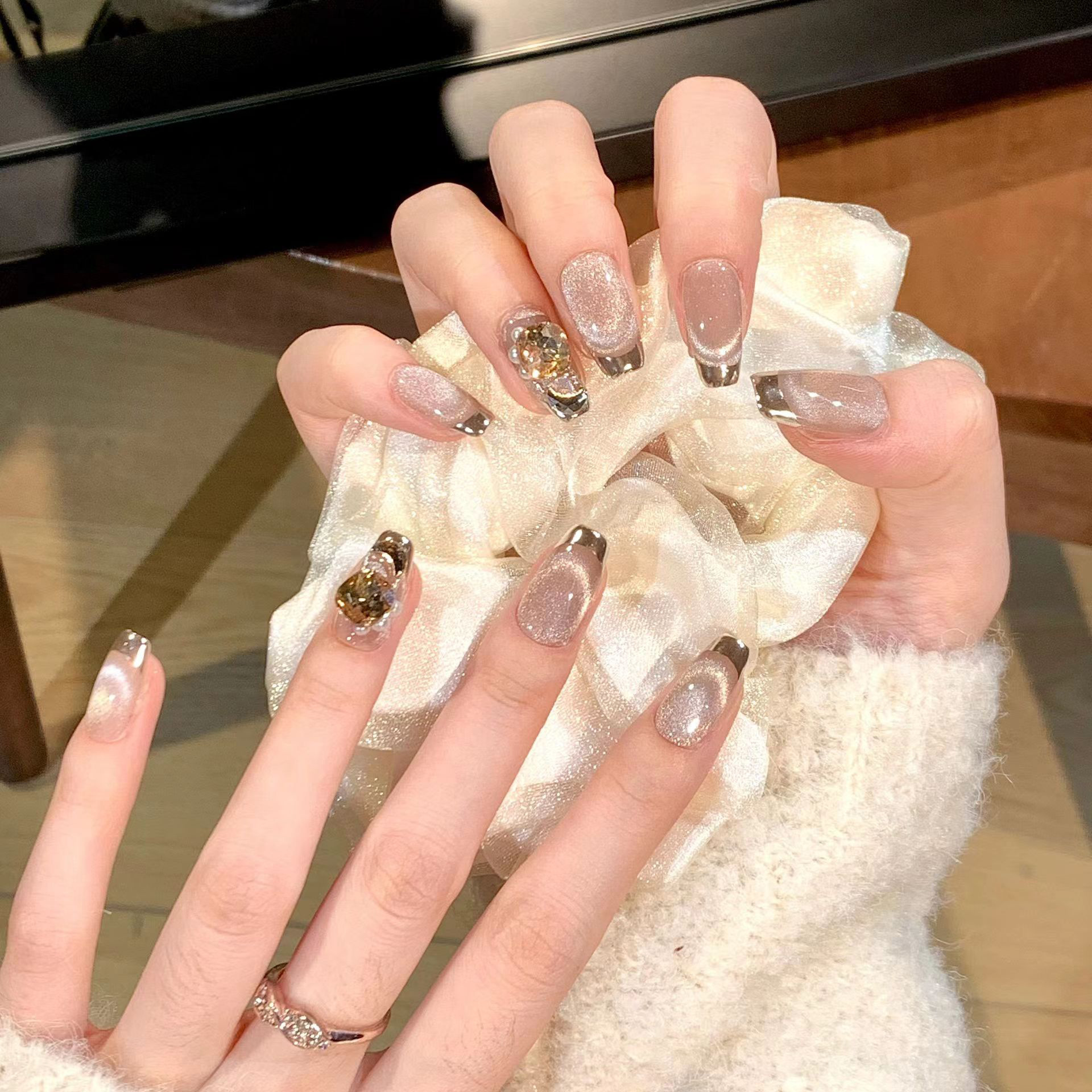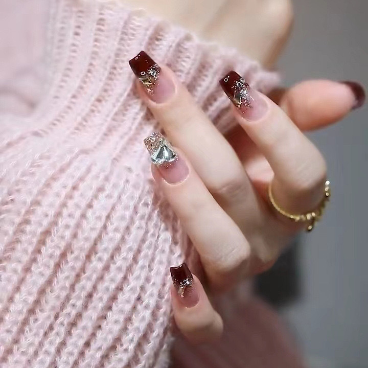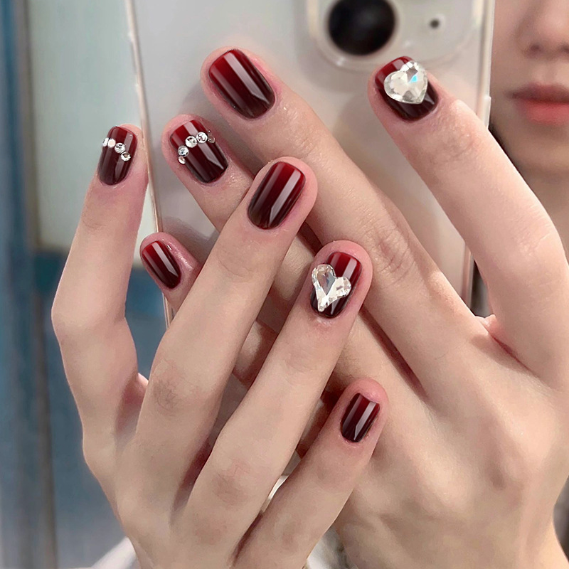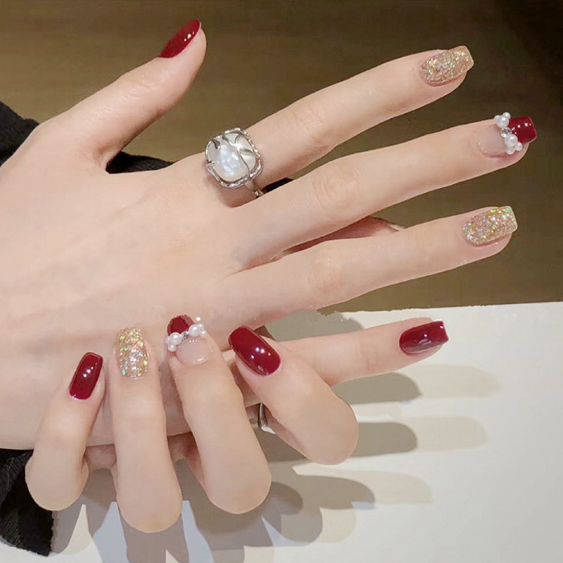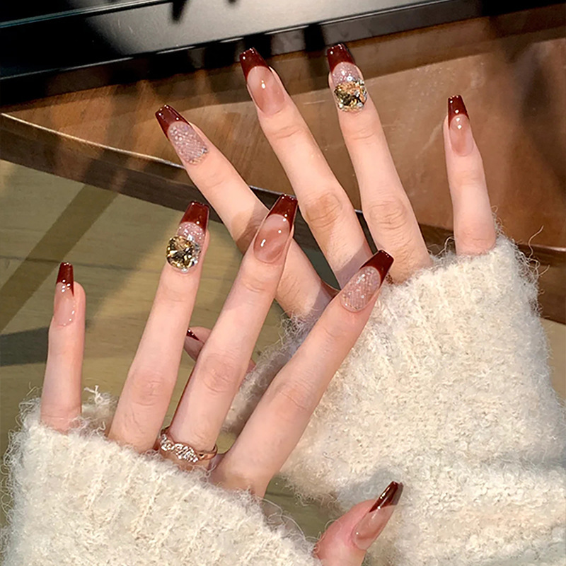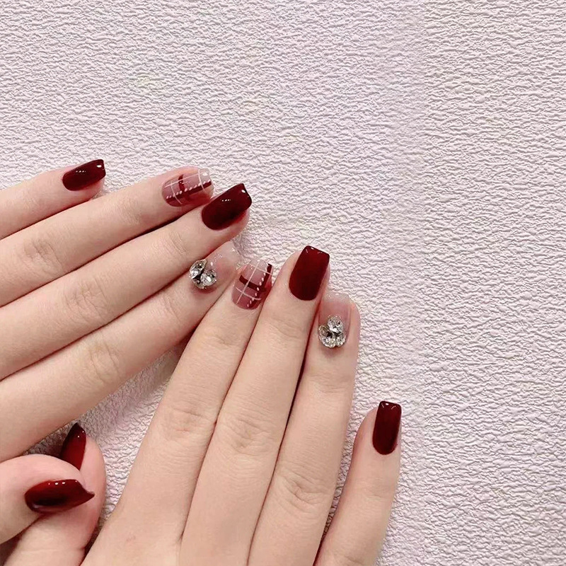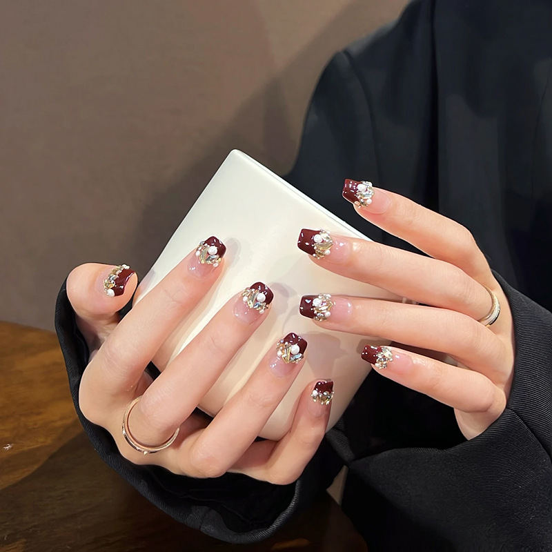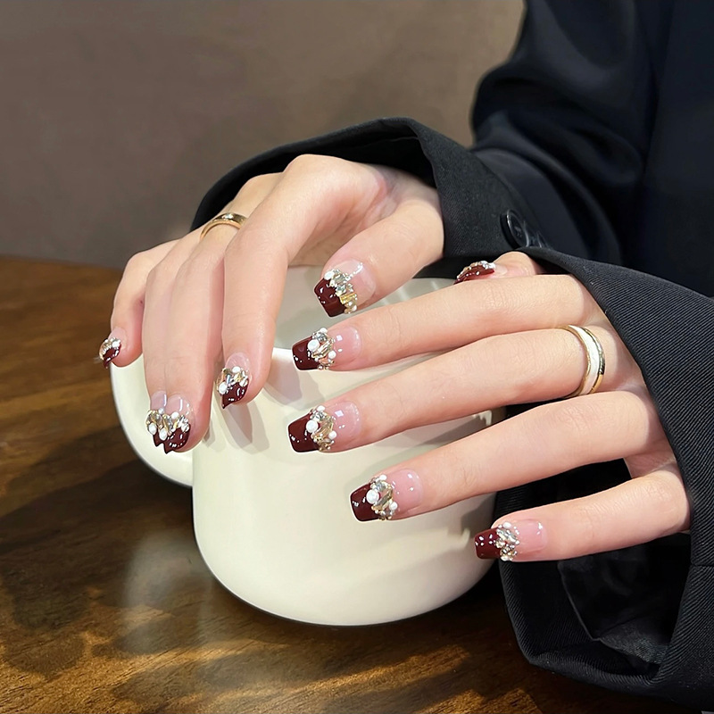 【新年美甲❗ins风潮流造型】穿戴甲高级感酒红法式美甲ins风穿戴美甲甲片显白假指甲美甲。rf
