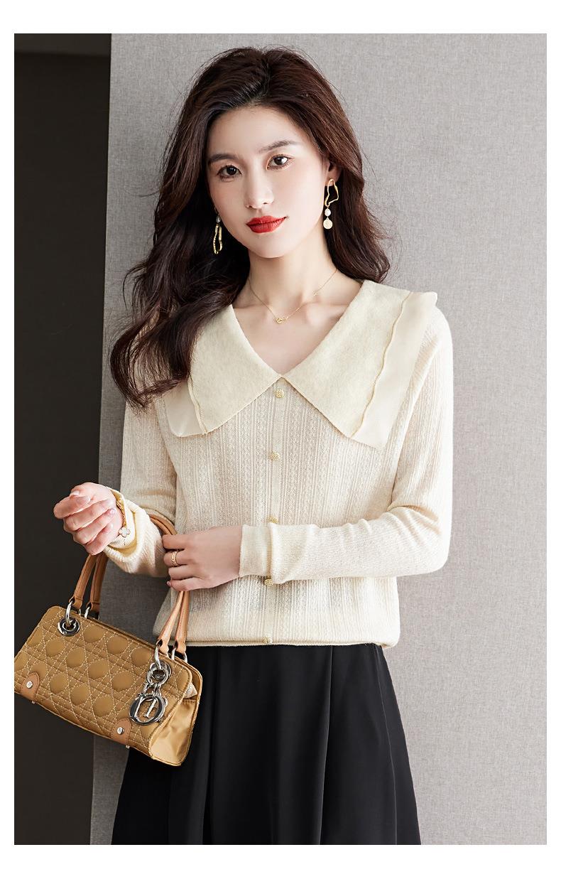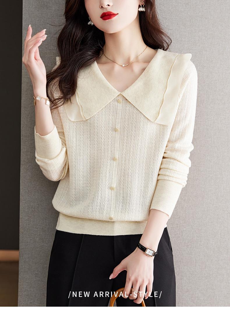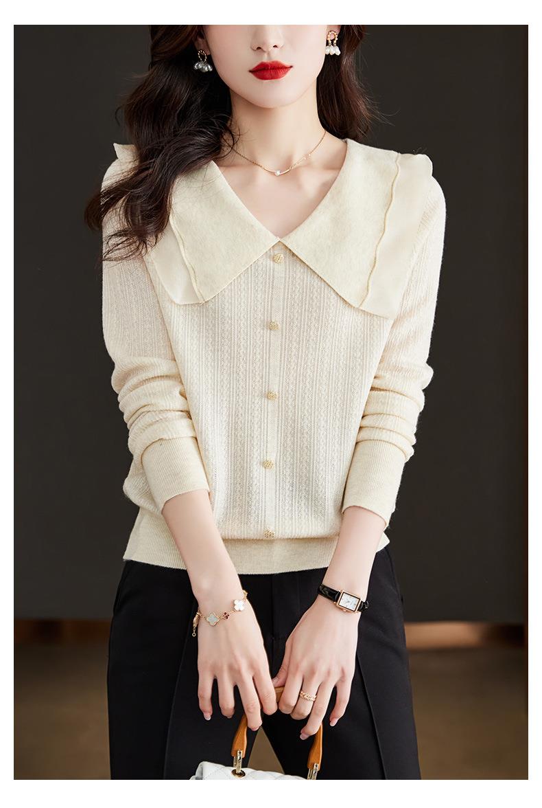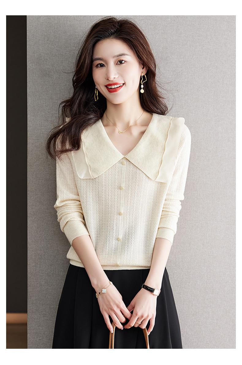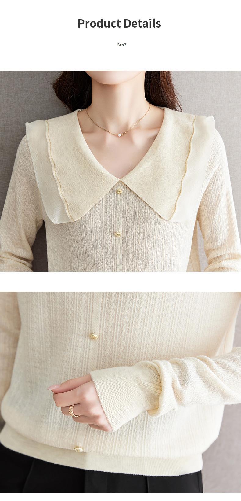 羊毛混纺杏色针织衫女装长袖新款娃娃领软糯亲肤打底衫上衣