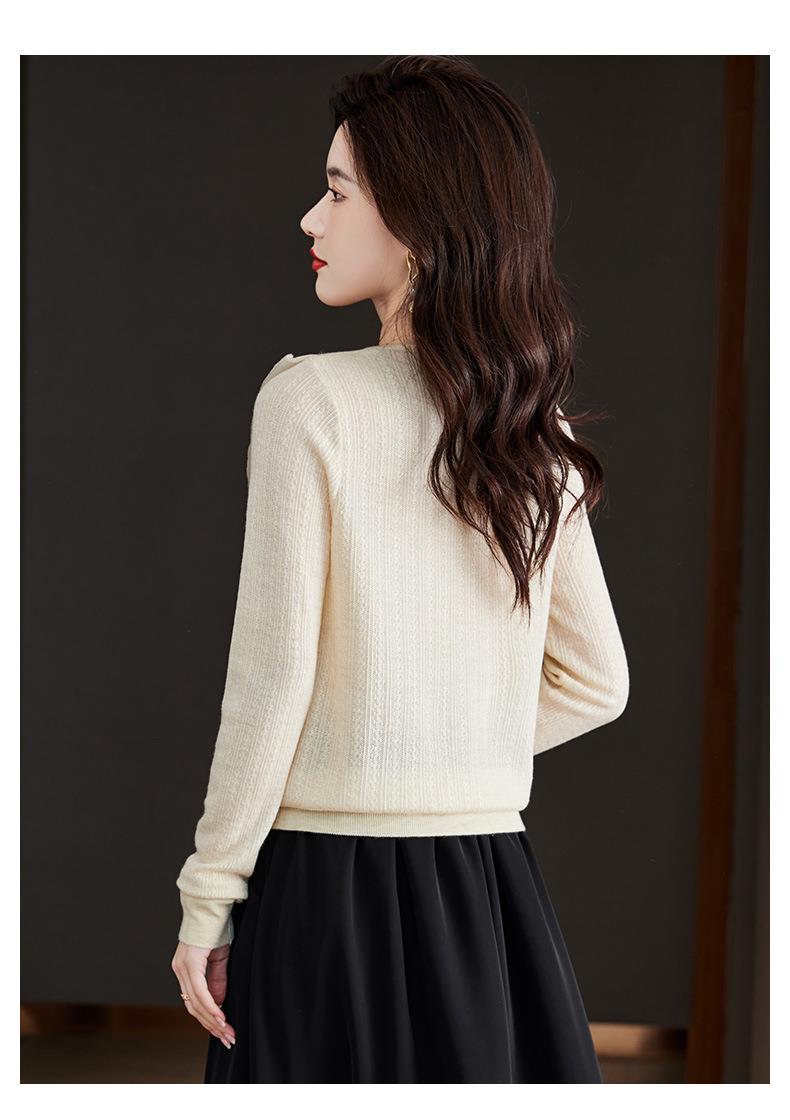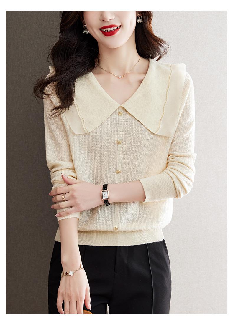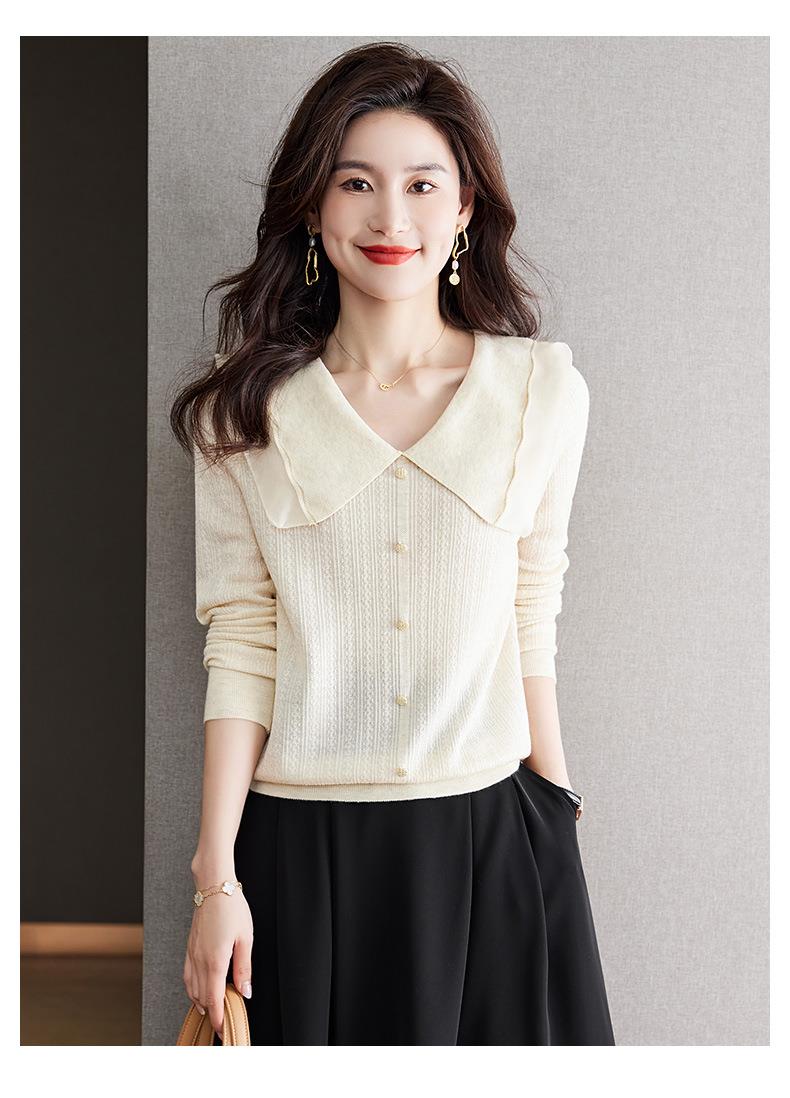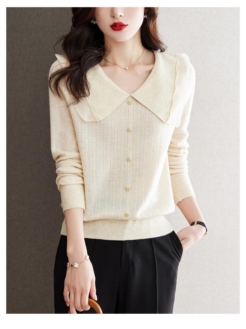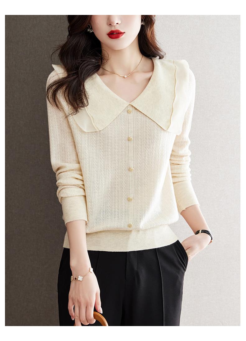 羊毛混纺杏色针织衫女装长袖新款娃娃领软糯亲肤打底衫上衣