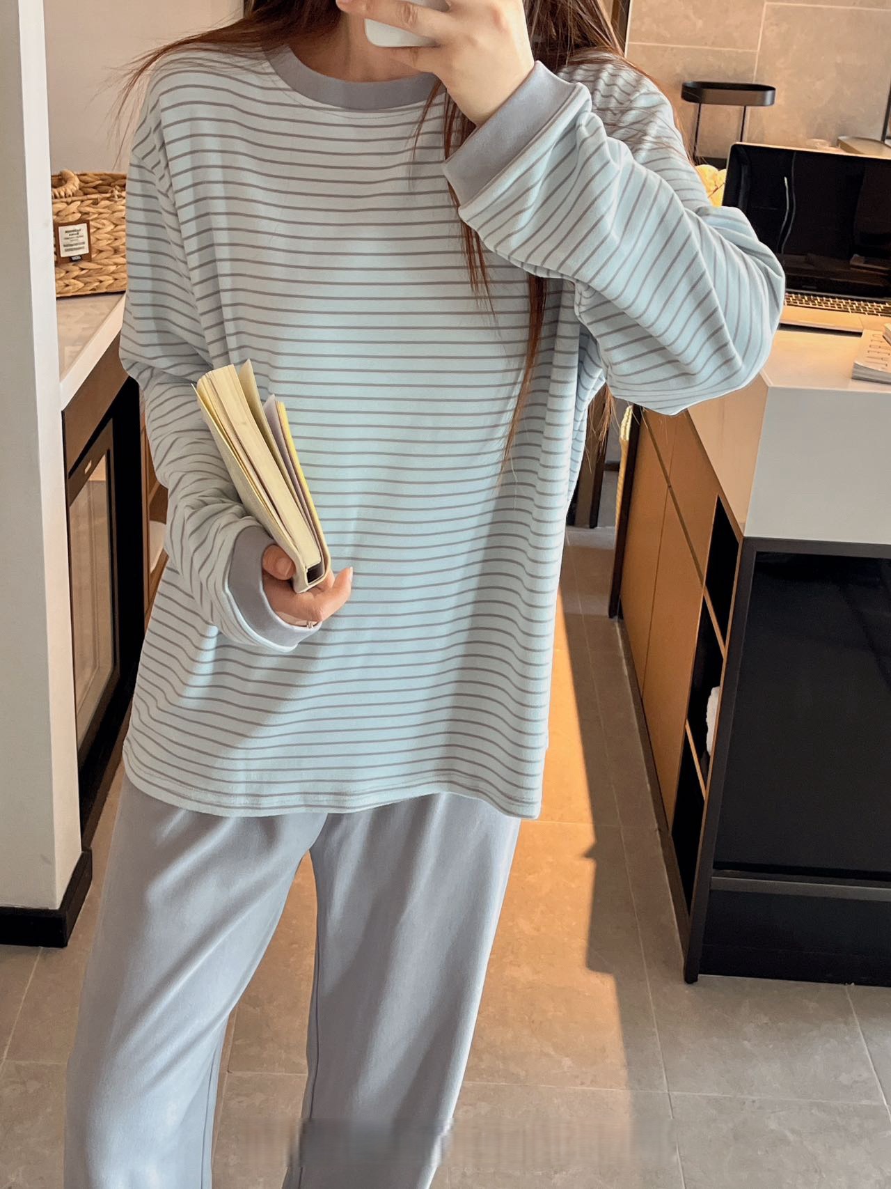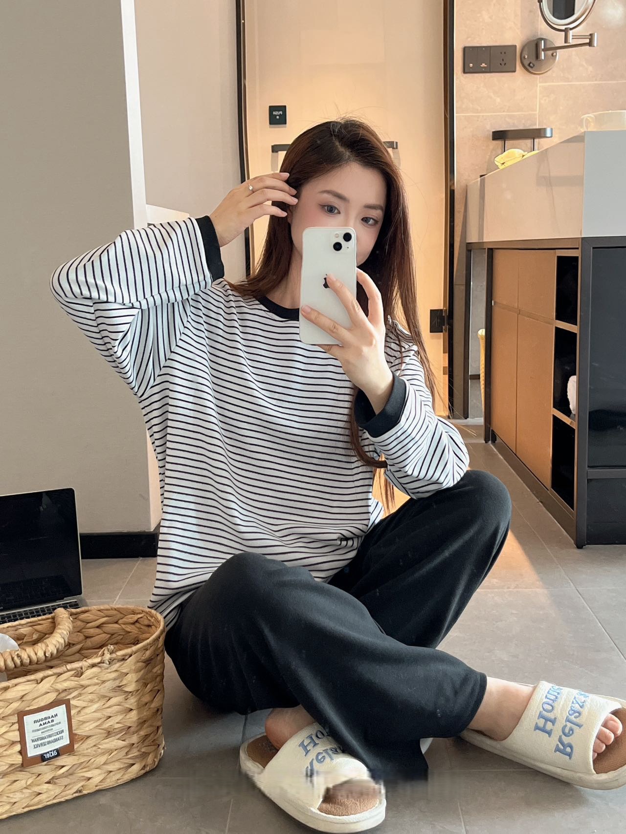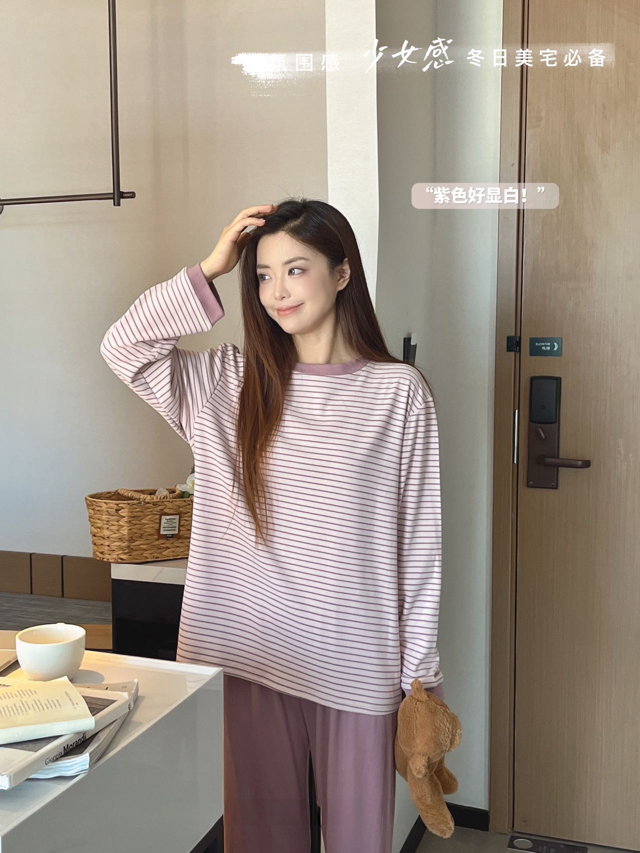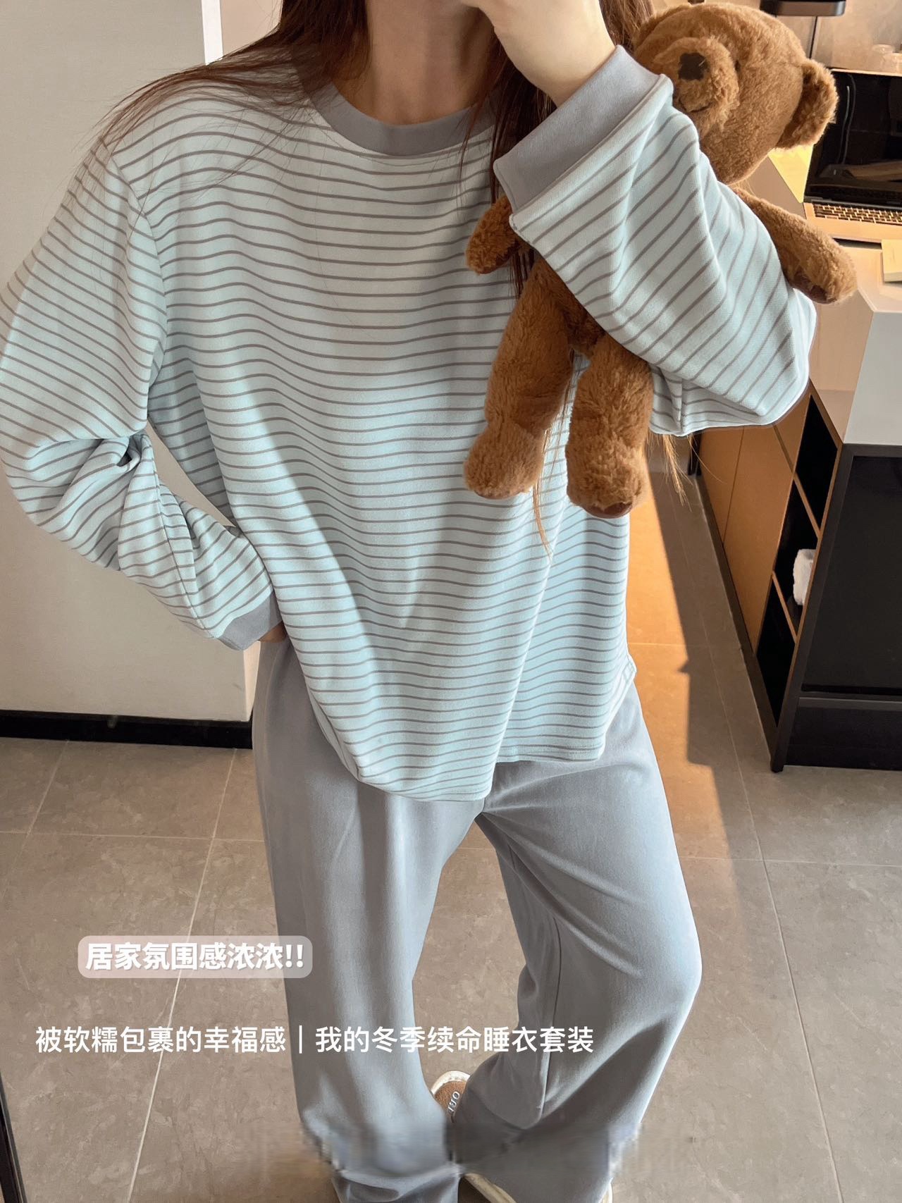 【居家氛围感浓浓❗️宽松版型不挑身材】睡衣女秋冬款海星条纹套装新款睡衣女秋冬款韩系长袖条纹家居服套。ja
