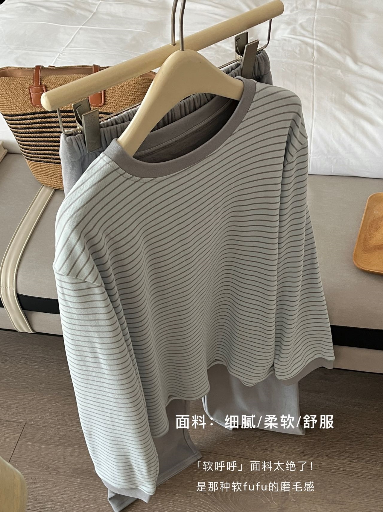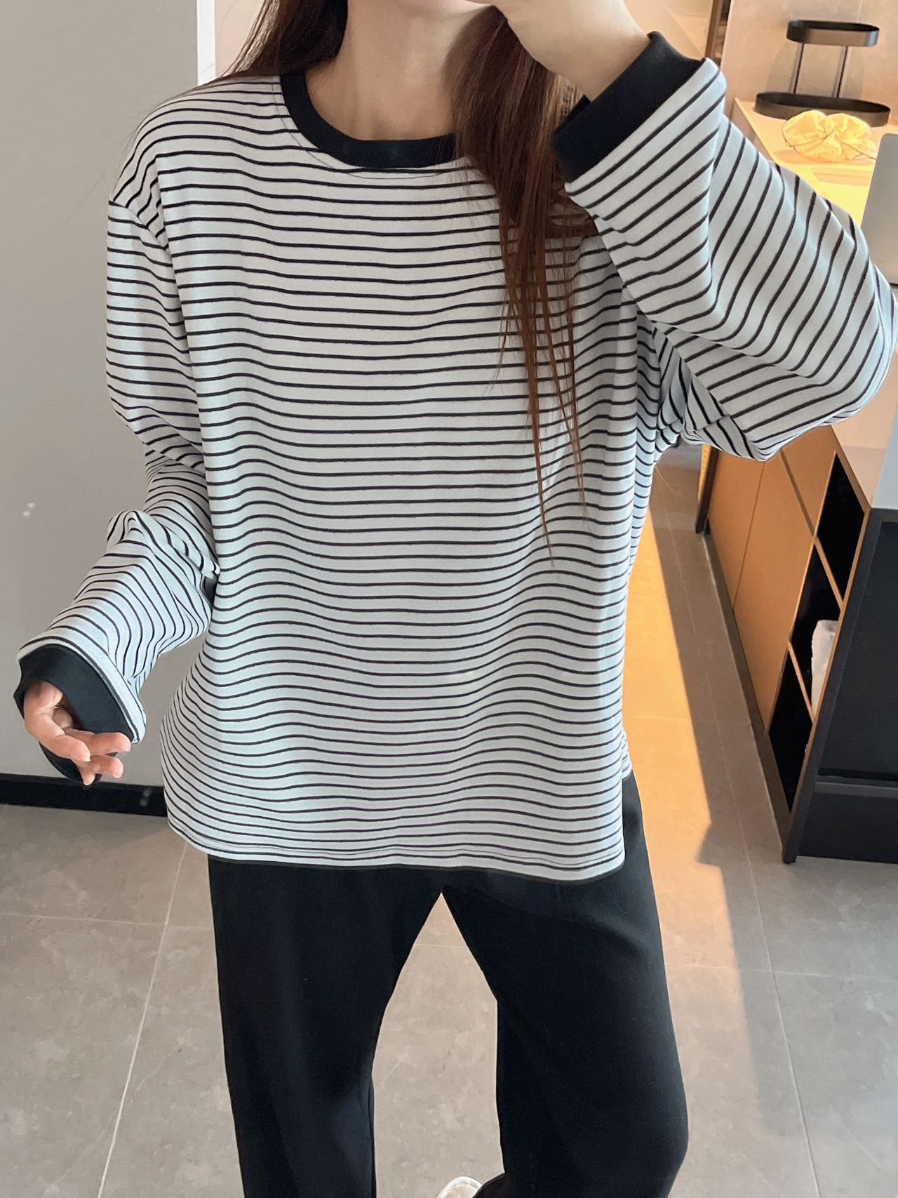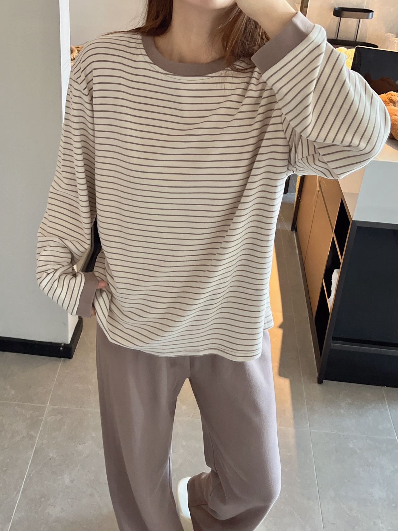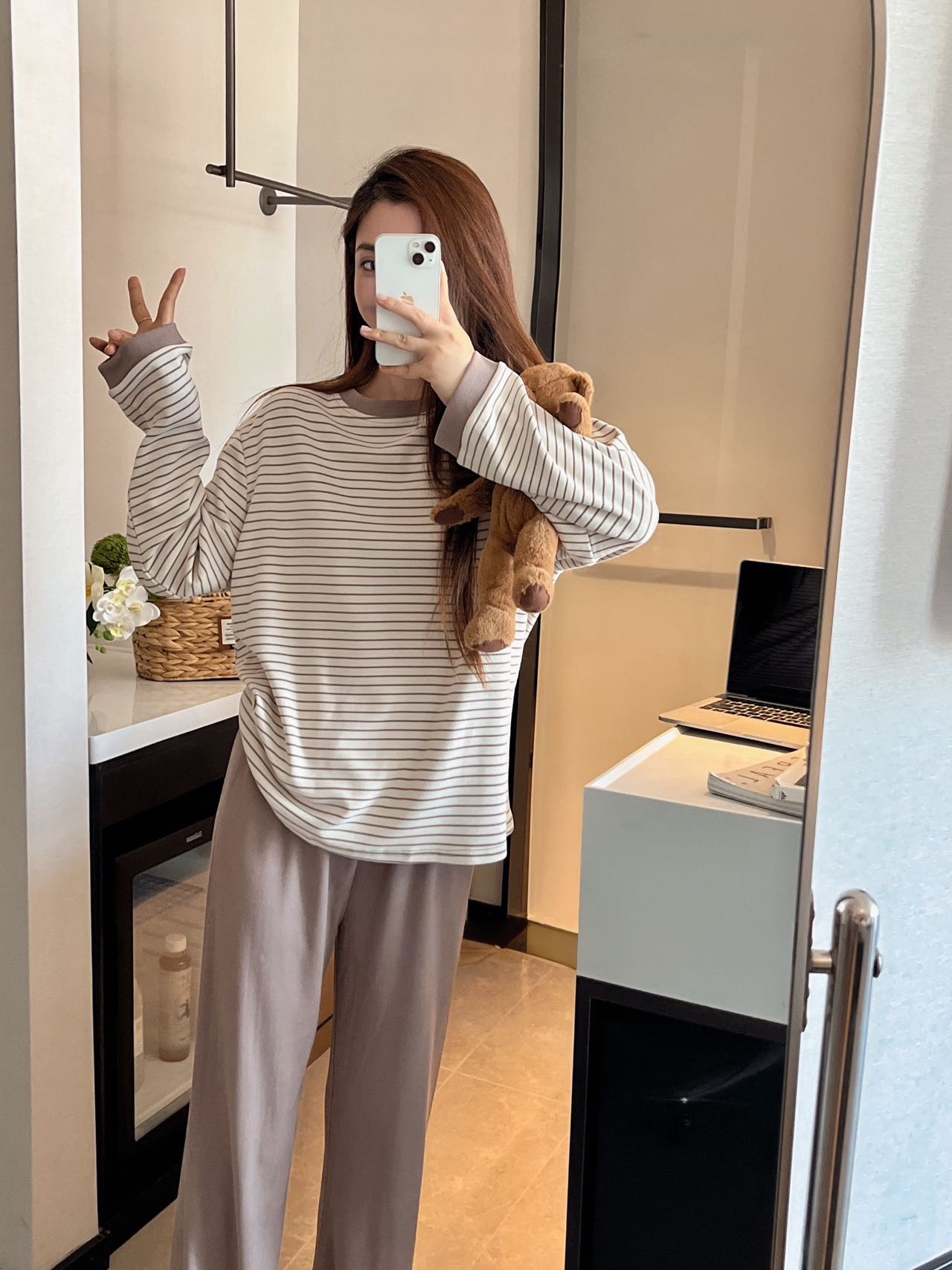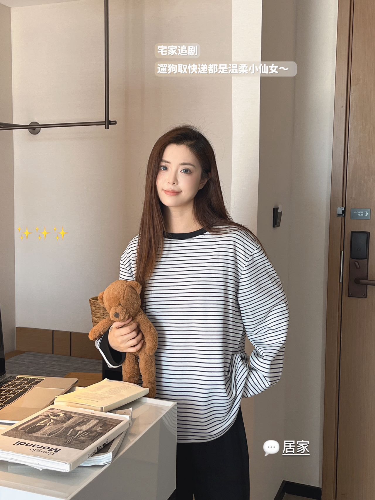 【居家氛围感浓浓❗️宽松版型不挑身材】睡衣女秋冬款海星条纹套装新款睡衣女秋冬款韩系长袖条纹家居服套。ja
