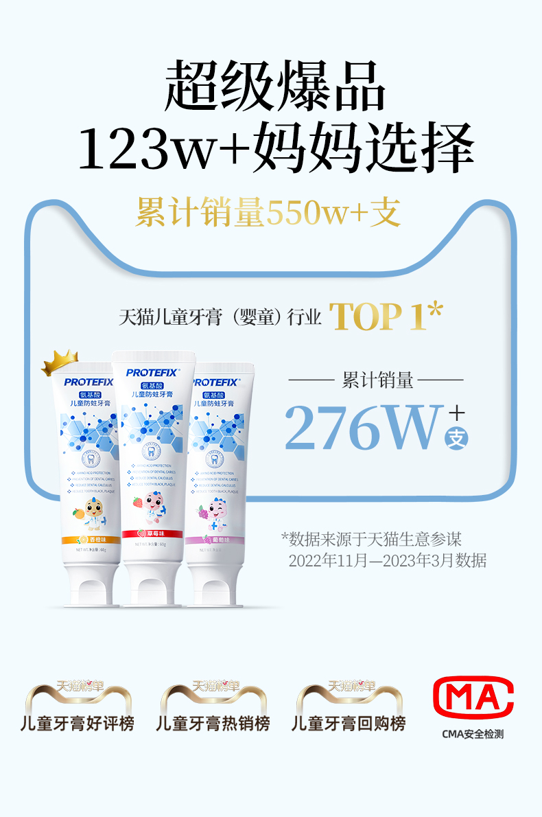 恐龙医生儿童牙氨基酸儿童防蛀牙膏水果萃取双重氨基酸瓦解污渍3到6岁