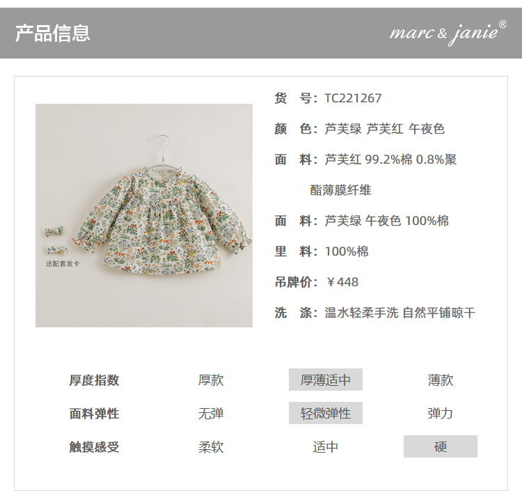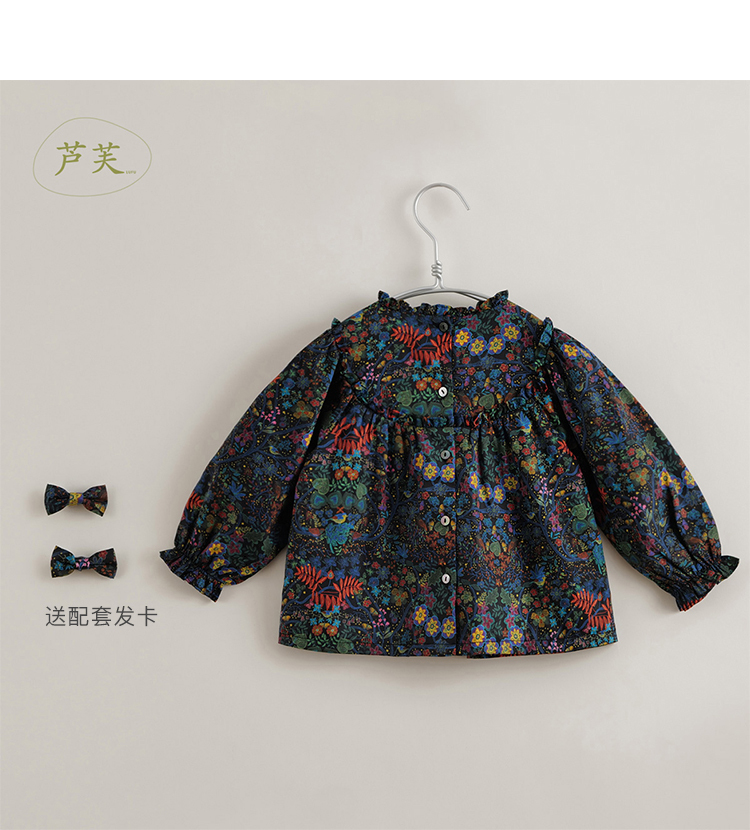 【马克珍妮 芦芙系列】秋装新款 女童木耳边长袖小衫221267