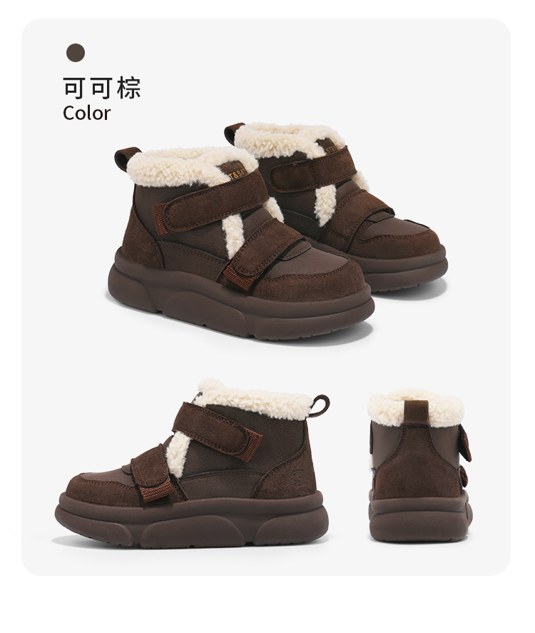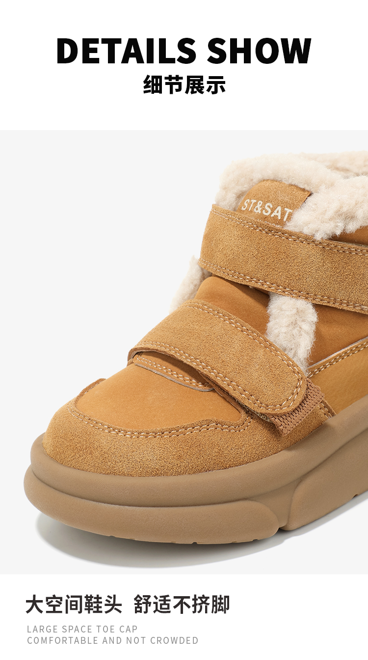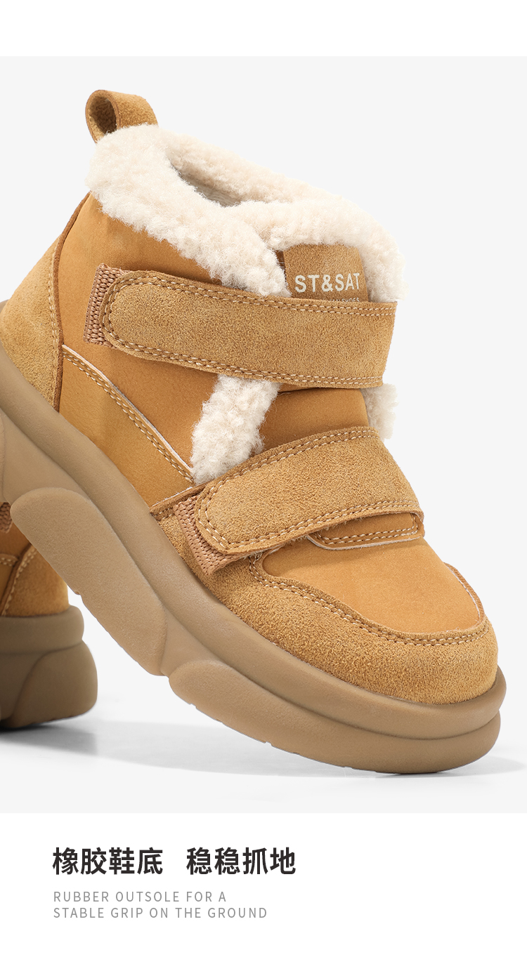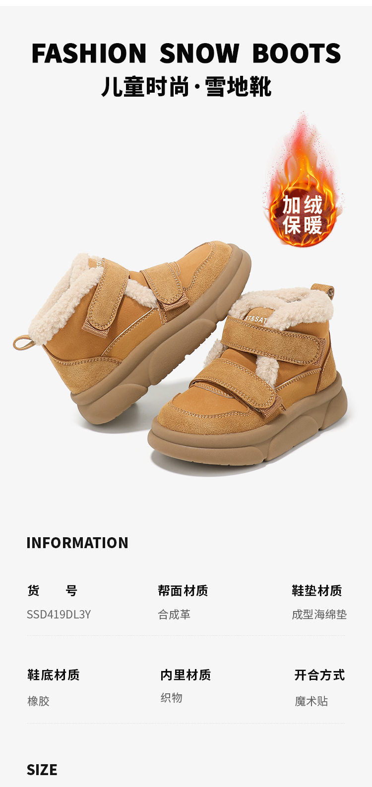 【童鞋】星期六户外防滑厚绒魔术贴男女童雪地靴SSD419DL3Y