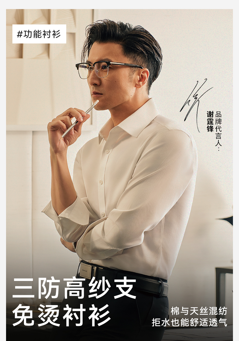 【专柜人气爆款】100支八字领提花三防液氨丝光衬衫-407-03