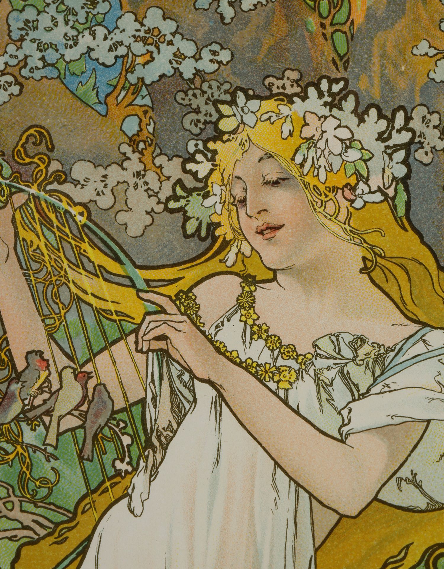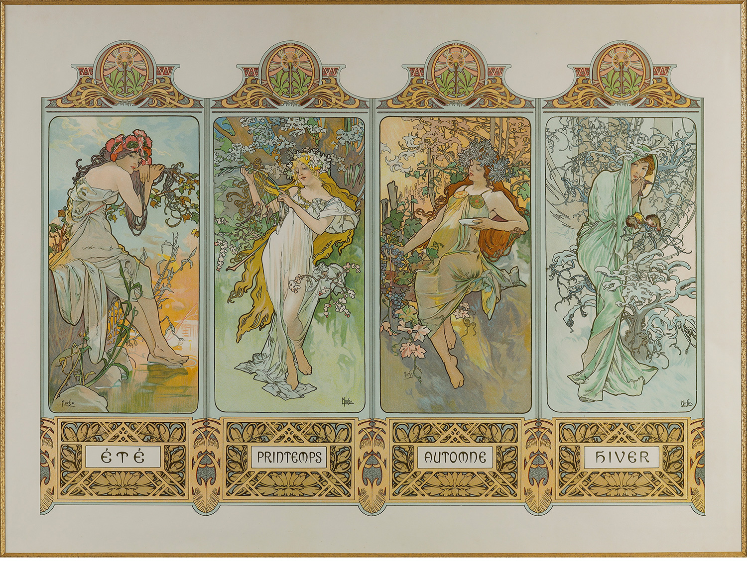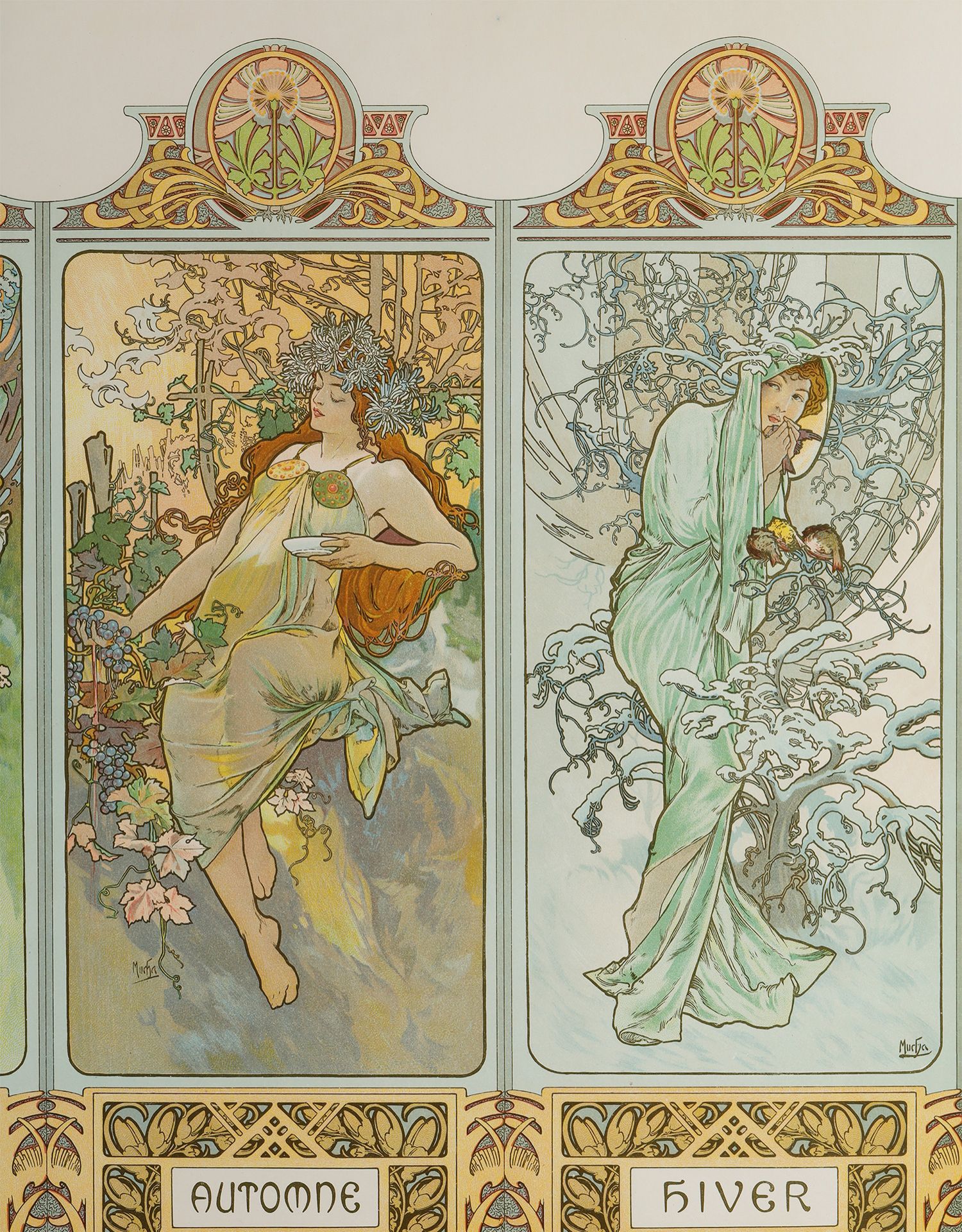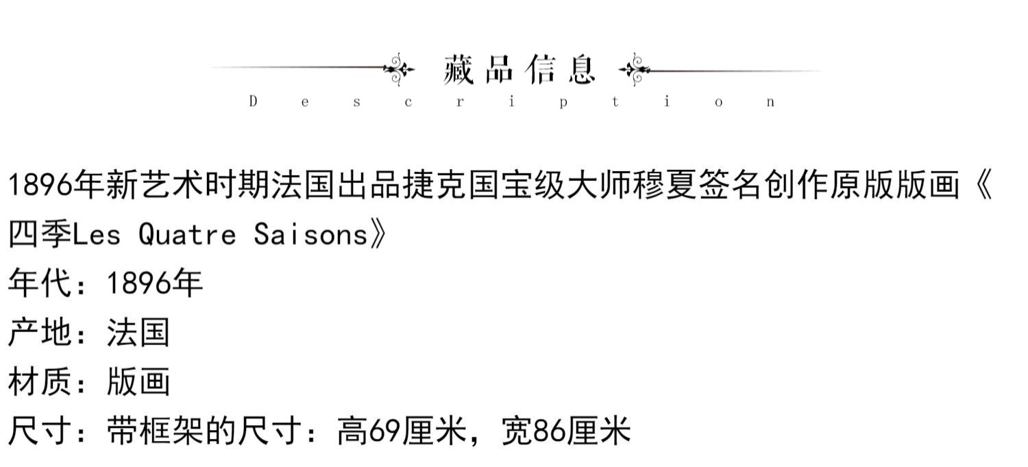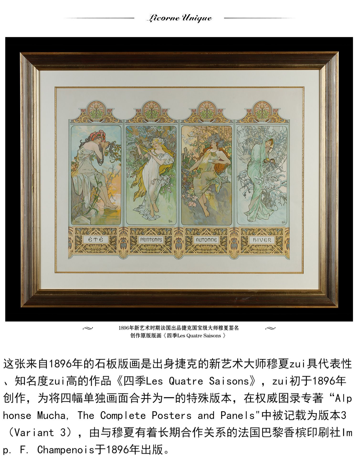 独角鹿西洋古董大师穆夏签名原版版画《四季Les Quatre Saisons》